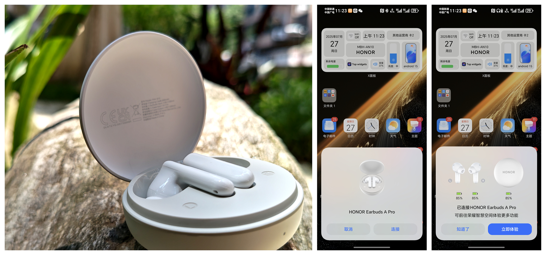 |操作体验连接方式上,它支持智能弹窗与开盖即连功能,搭配荣耀手机时,开盖瞬间便能弹出配对弹窗,无需繁琐操作即可快速连接,响应速度极快,弹窗动画也很漂亮。更贴心的是云端保存连接记录,即便更换设备,也无需重新配对,旧设备的连接信息自动同步,换机无缝衔接,对多设备用户十分友好。