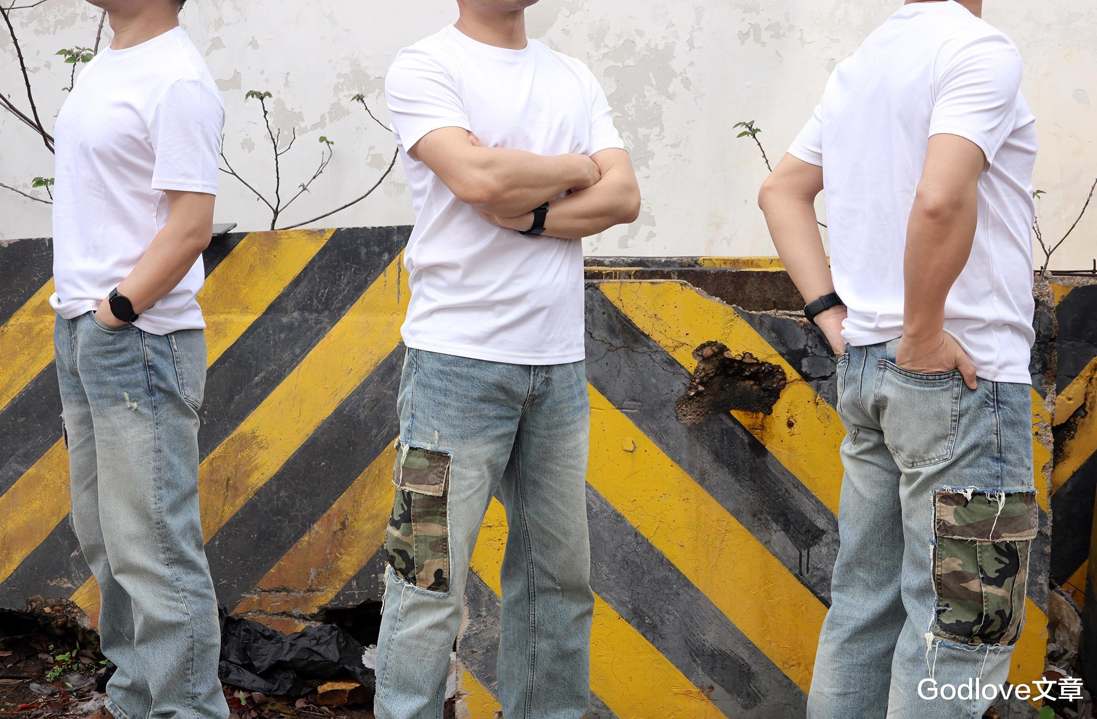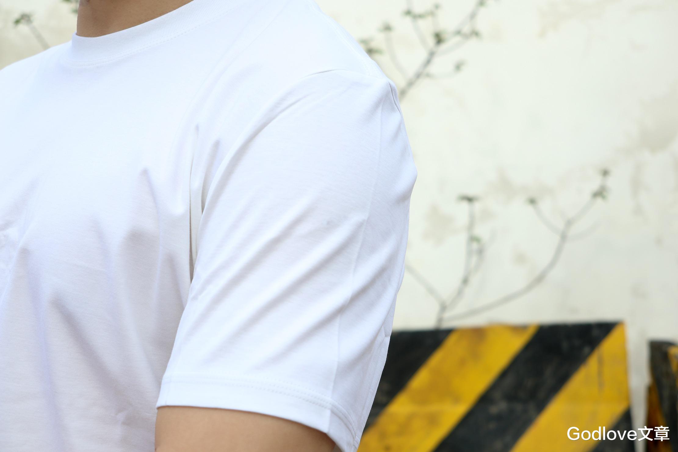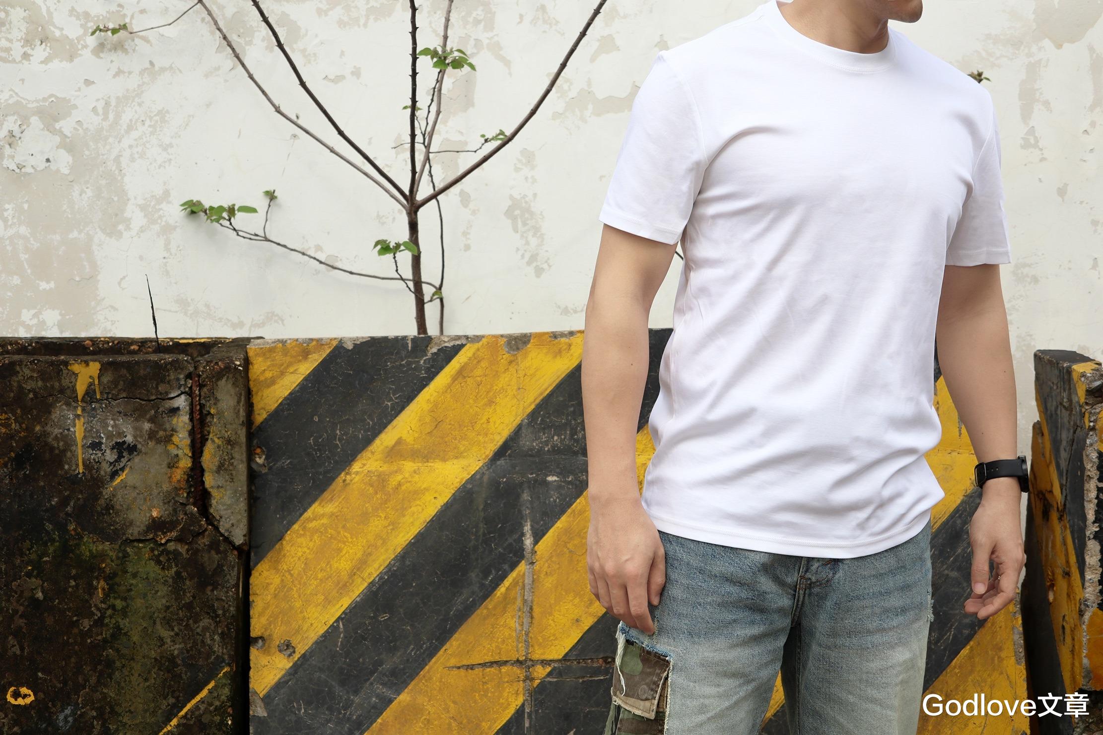 首先来体验白色版本,VBREX的T恤上身干净利落,纯白色调清爽通透,视觉上自带提亮效果,不挑肤色。整体版型偏合身直筒,不紧绷也不松垮,肩线利落、衣长适中。
