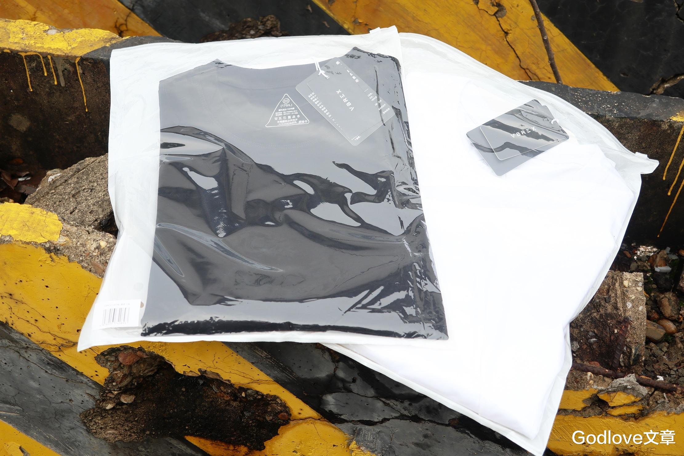 经典黑白两色可供选择的VBREX六防短袖T恤包装非常简约干净,高透 PE 复合袋带有卡和锁扣,正面能够看到内部衣物面料和颜色,同时还能看到领口后方的三角状印标签以及双吊牌。