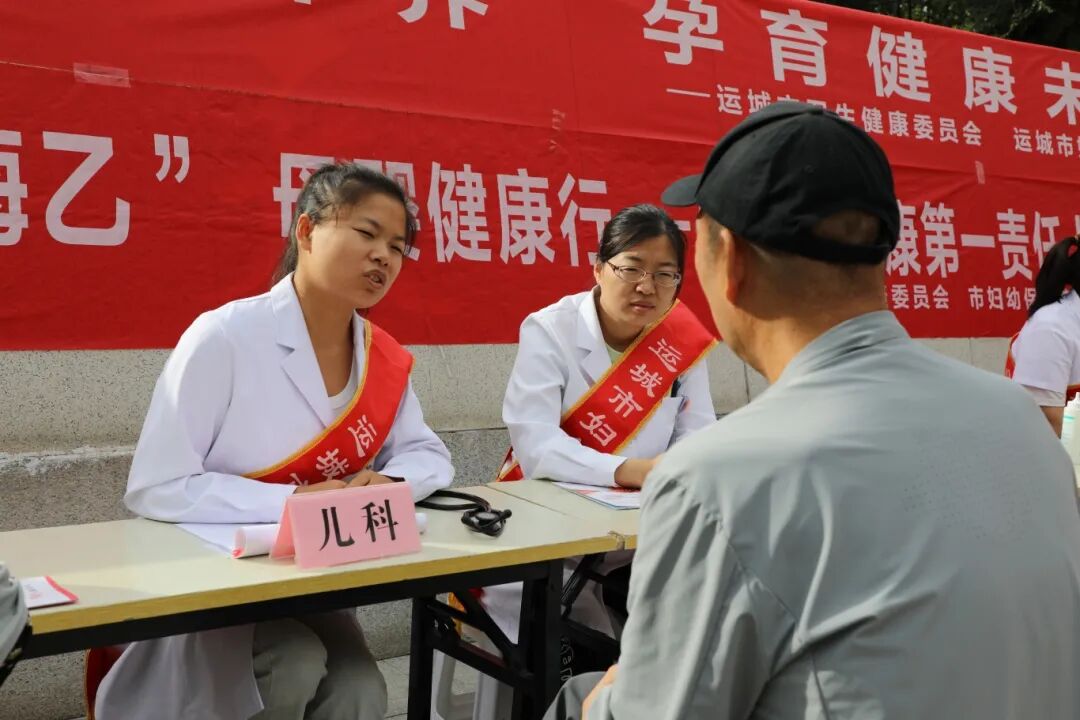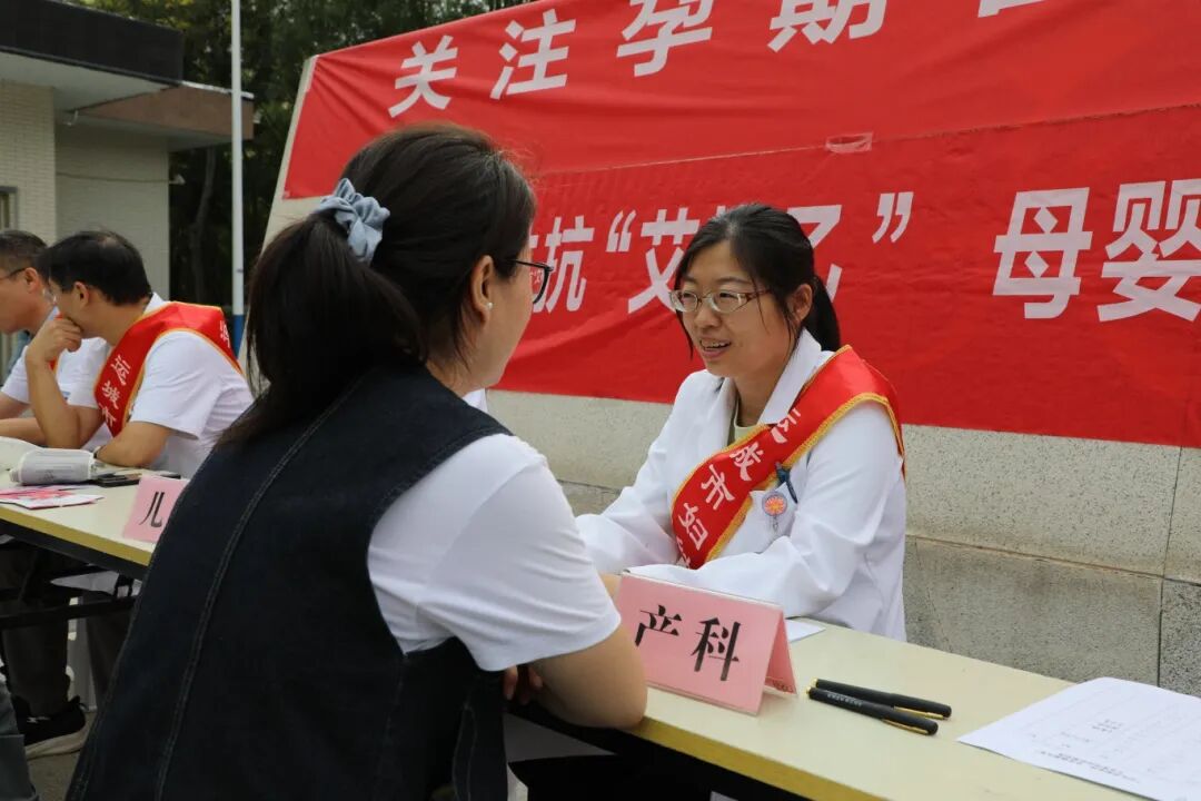 我院第五党支部党员、保健部志愿者现场为群众发放宣传资料,宣讲预防出生缺陷防治和消除“艾梅乙”母婴传播科普知识,解答群众提出的问题。
