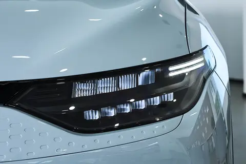 初在展厅见到零跑C11时,我愣了几秒,它不像一台传统意义上的“家用SUV”,更像是一件从未来驶来的工业艺术品。低趴的车头、流畅的轮廓、头顶那枚若隐若现的激光雷达,仿佛在轻声告诉你:“我不只是代步工具,我是智能出行的新物种。”虽然它是增程车型,但前脸依旧采用纯电风格的封闭设计,中央贯穿式LED灯带支持动态迎宾效果,解锁时如呼吸般点亮,仪式感十足。两侧为分体式LED大灯组,上方是锐利的日行灯,形似“鹰眼”,夜间点亮辨识度很高;下方远近光隐藏于导流槽内,整体感更强。特别引人注目的莫过于车顶前部集成的禾赛128线激光雷达。不同于早期车型突兀的“小犄角”,这一代采用了嵌入式流线舱设计,与车顶弧线自然衔接,不仅风阻更低(Cd值优化至0.28),视觉上也毫无违和感。整个前脸干净利落,没有多余线条,却处处透露着“我懂科技”的自信。
