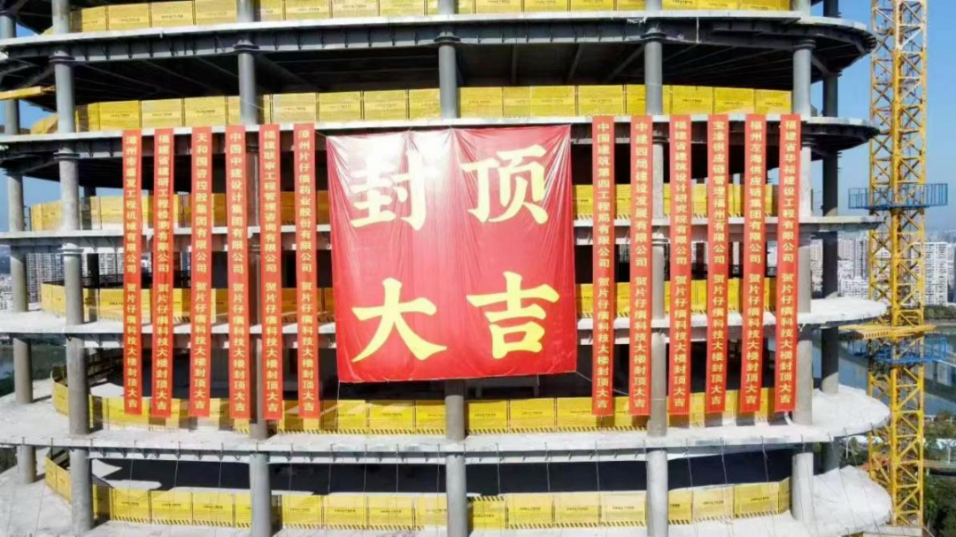 近日,片仔癀科技大楼钢结构工程实现封顶。该工程由杭萧钢构(江西)有限公司负责施工,标志着这座漳州新地标的主体架构已经成型。