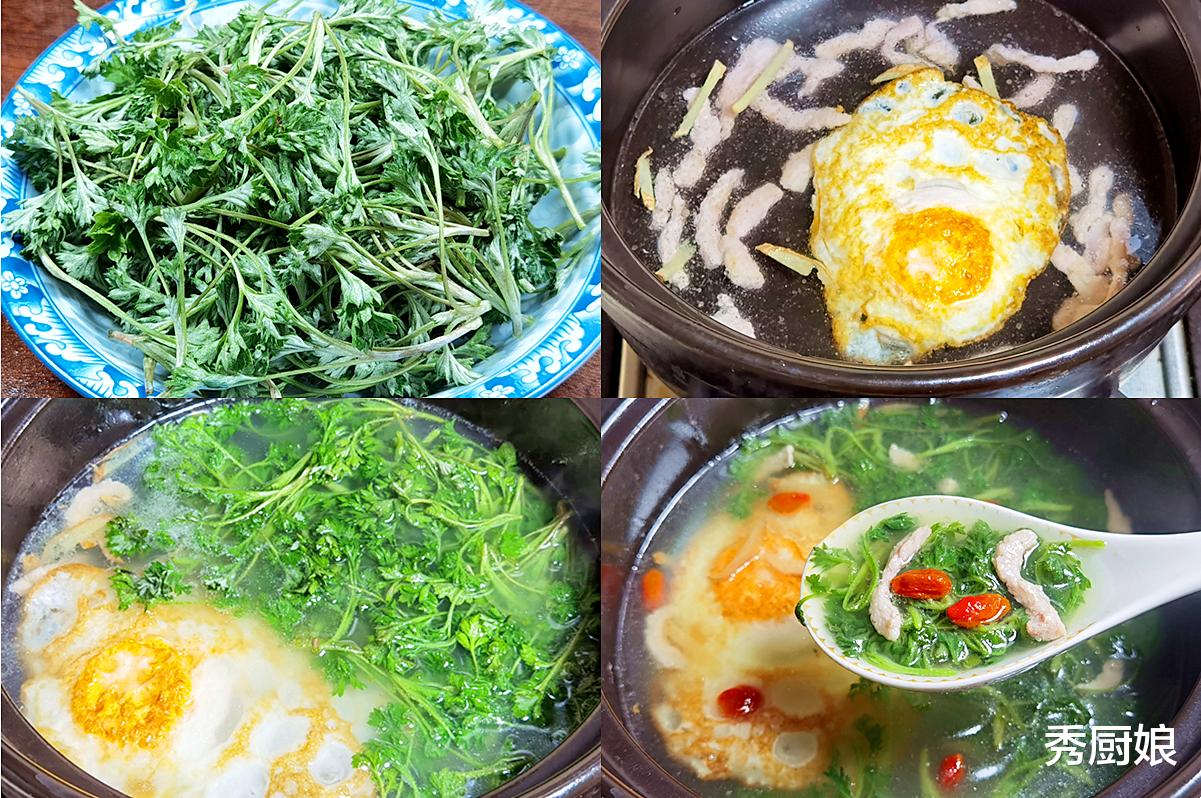 这道菜在我们老家又叫“艾草滚一滚,神仙站不稳”。说是汤,其实既是菜也是汤,做法特别快,很适合忙碌的上班族。