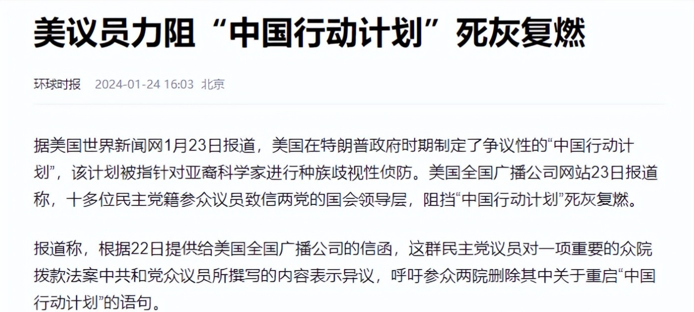 环球时报——美议员力阻“中国行动计划”死灰复燃
