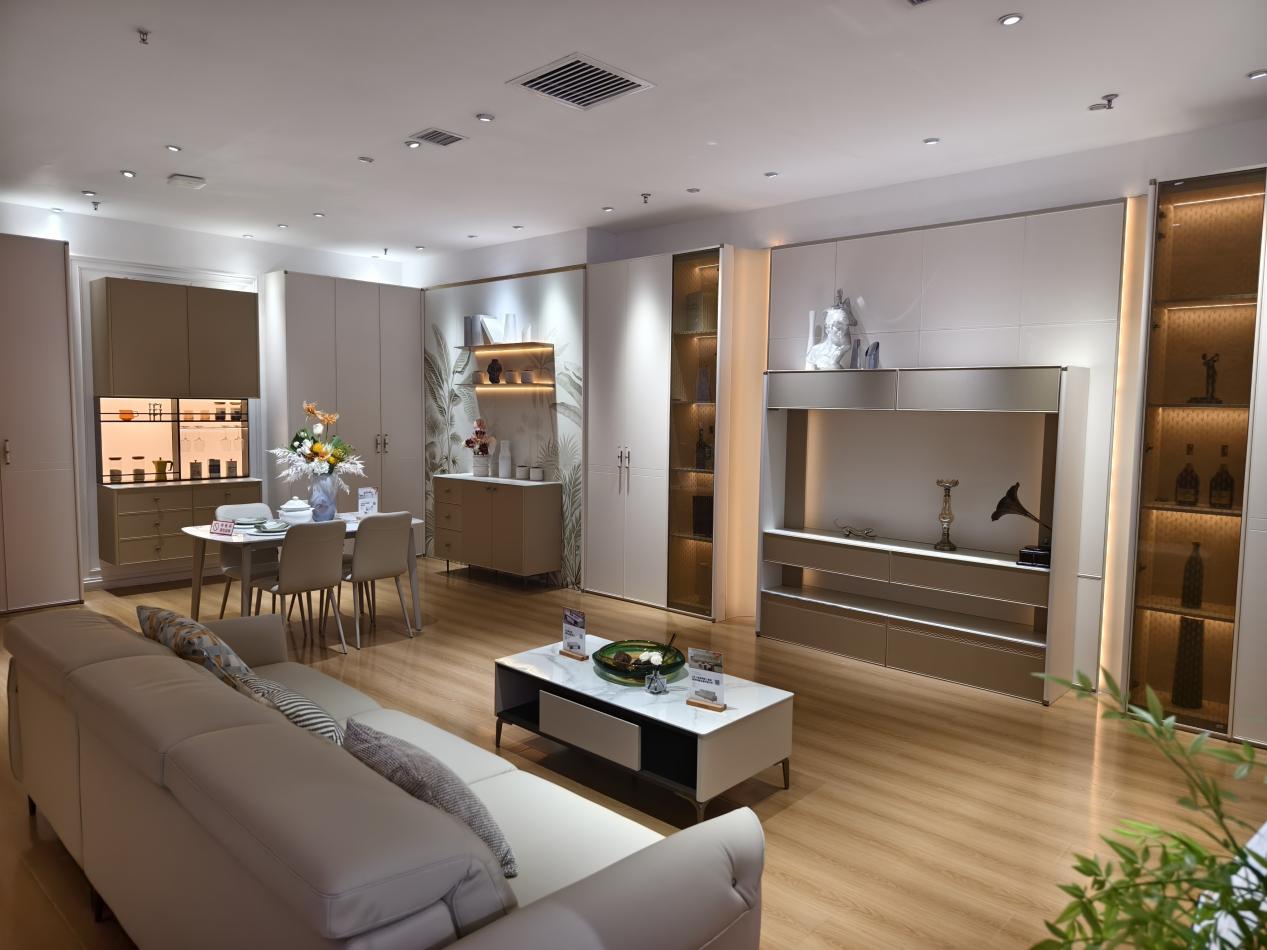 互动体验区:设置板材、五金件实物体验台,业主可亲手触摸不同材质的质感,测试五金件的耐用度;同时配备 VR 家居体验设备,戴上眼镜即可 “走进” 定制方案中,沉浸式感受空间布局与色彩搭配。