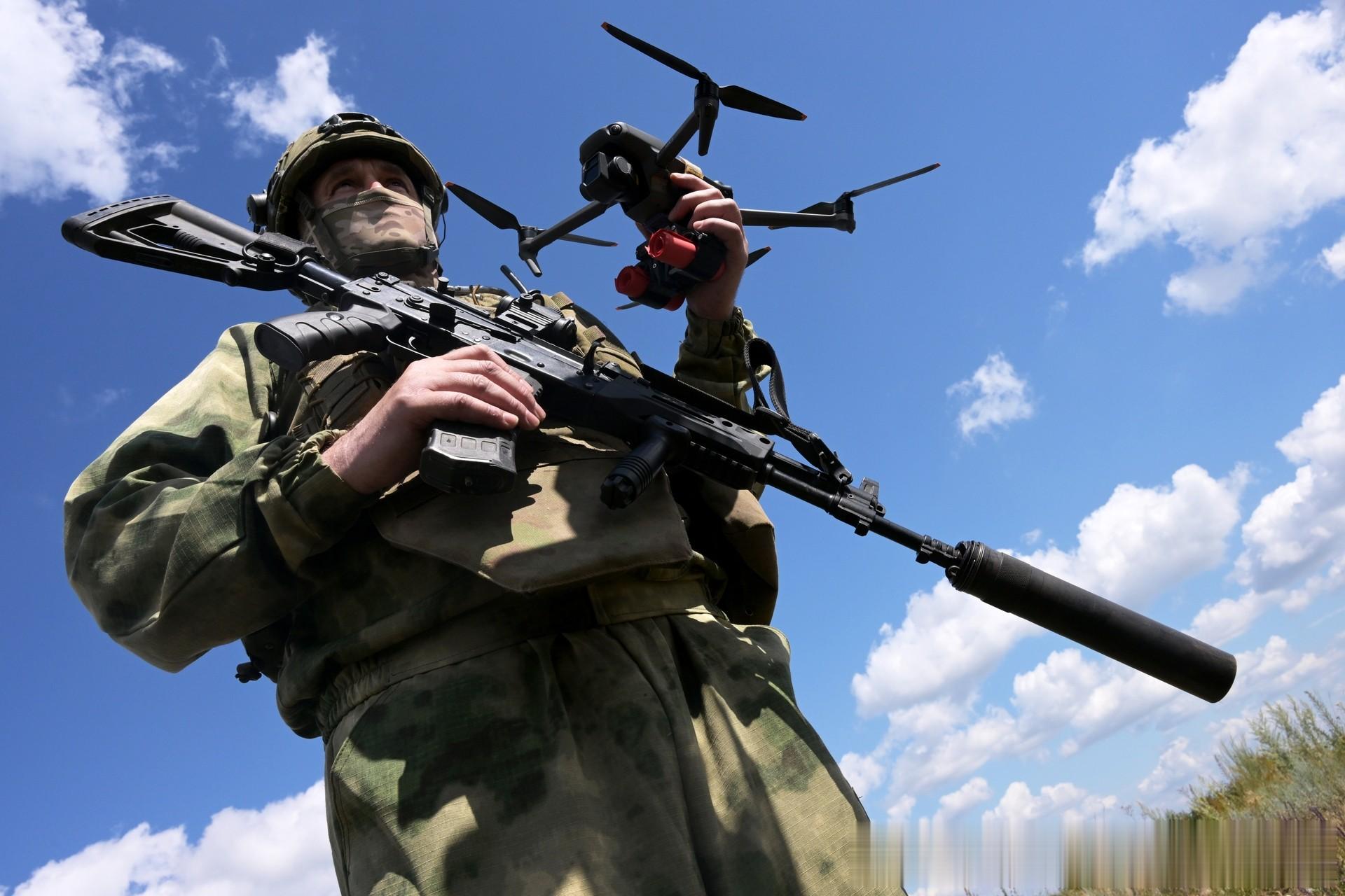 一名军人正在为FPV无人机准备战斗飞行 / 来源:© 谢尔盖·米尔内/俄新社