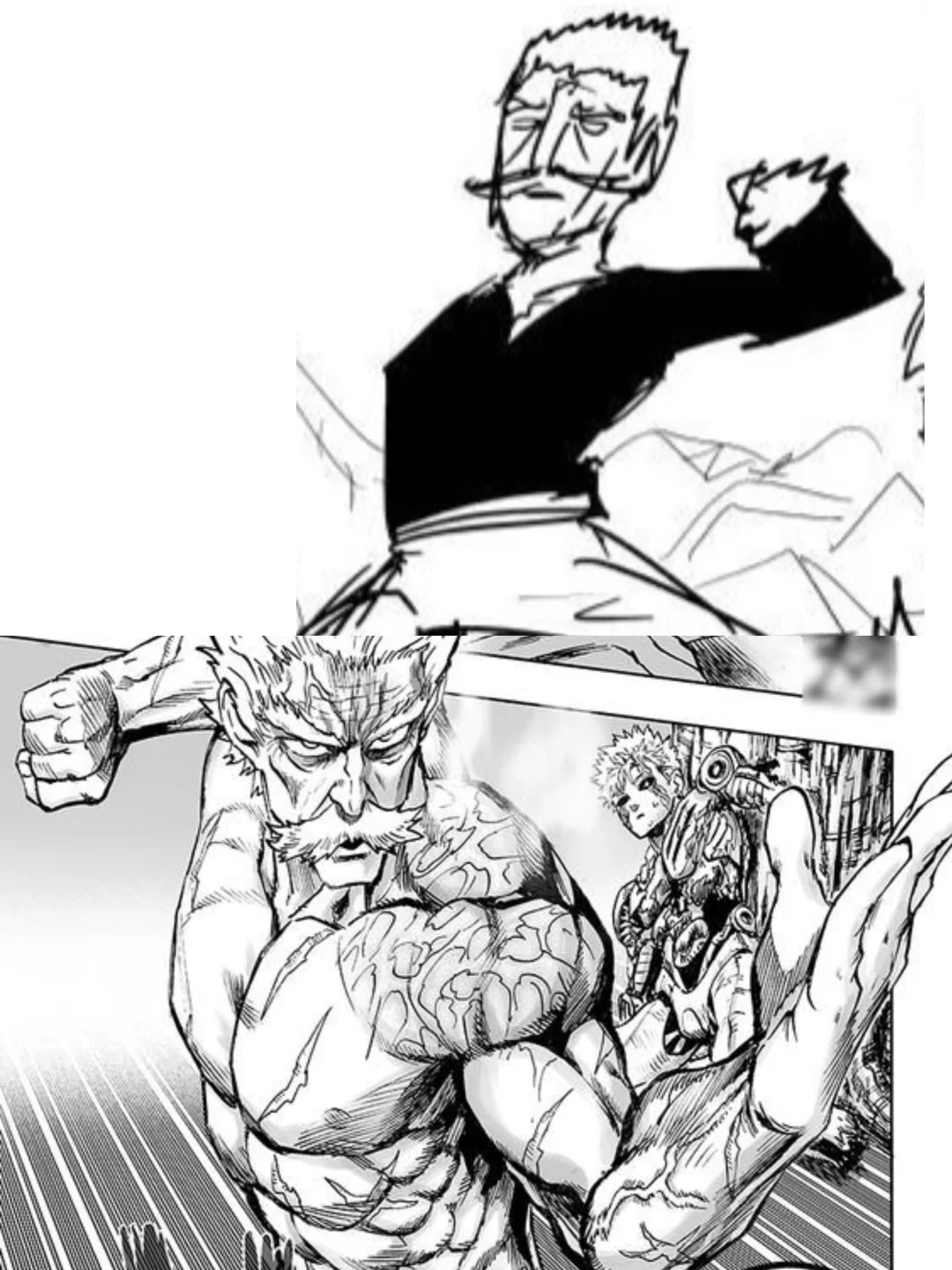 虽说在剧本创作、角色塑造及分镜设计等方面,ONE老师展现出极高天赋,但其“灵魂画手”的身份也是人尽皆知。直到作为漫画粉丝又以作画著称的漫画家村田雄介朝他伸出橄榄枝,二人一拍即合,兼具趣味设定、内容深度以及画风精致的《一拳超人》重制版正式在集英社网络漫画杂志“Young Jump Next”开启连载,热度再上一个台阶。