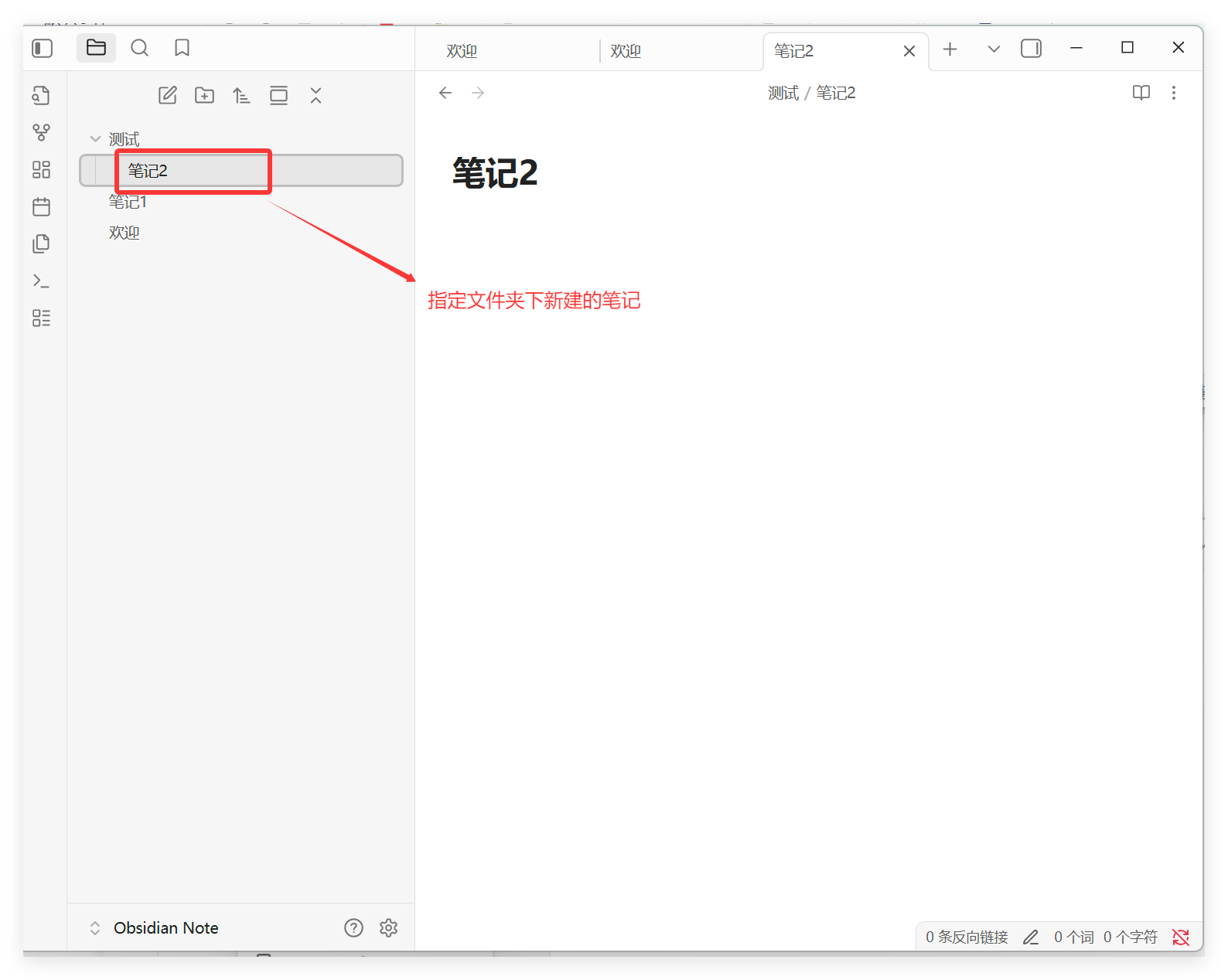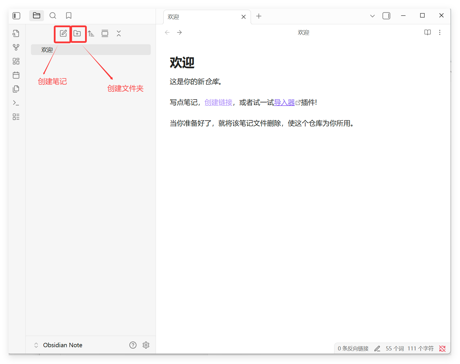 需要说明的是,通过上图所示图标创建的笔记和文件夹都位于根目录下。