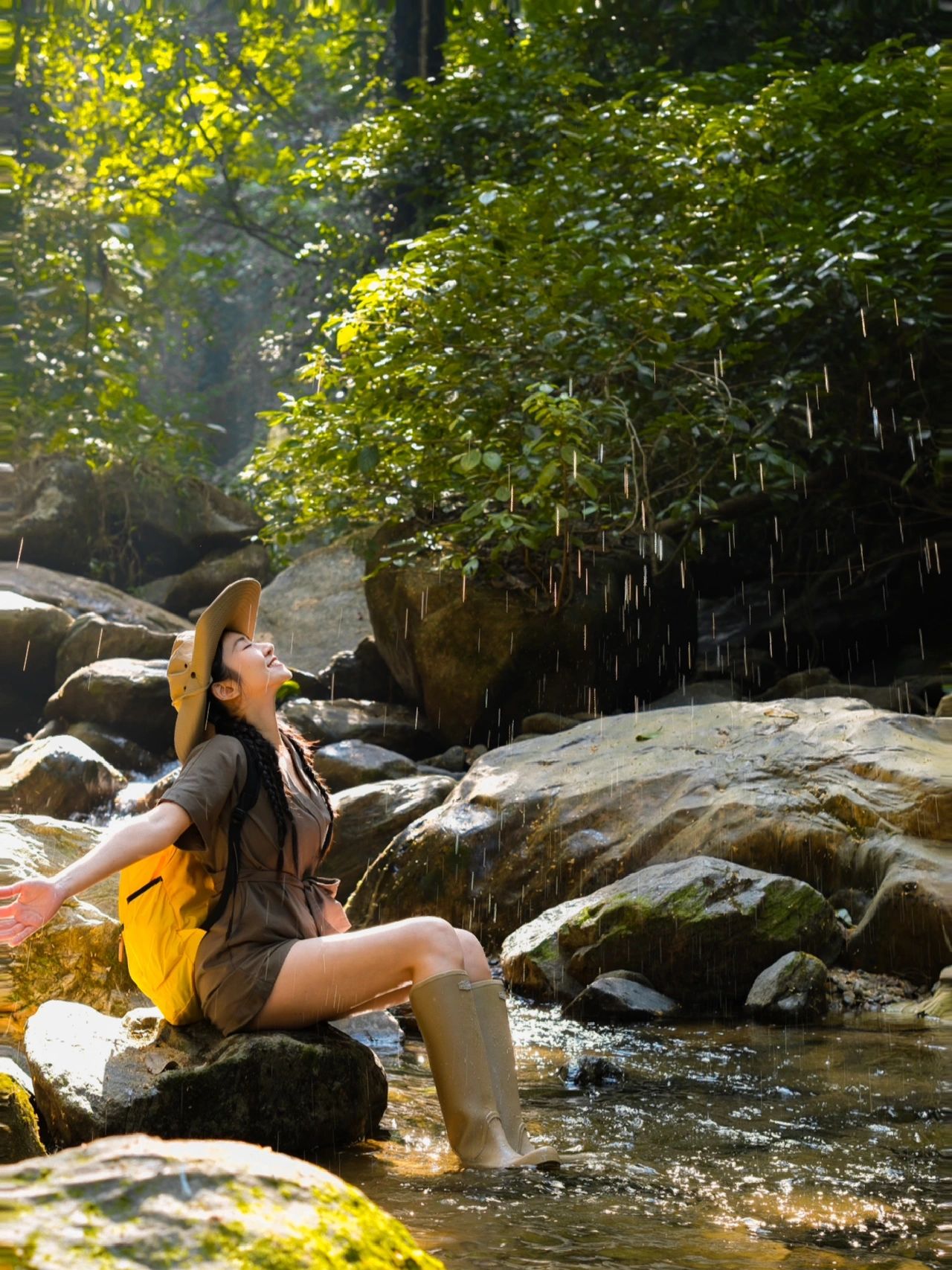 一路都溯溪而上,原始森林自然景观 超级清澈的溪水正常速度步行30min抵达瀑布顺着被人踩出的路走即可。