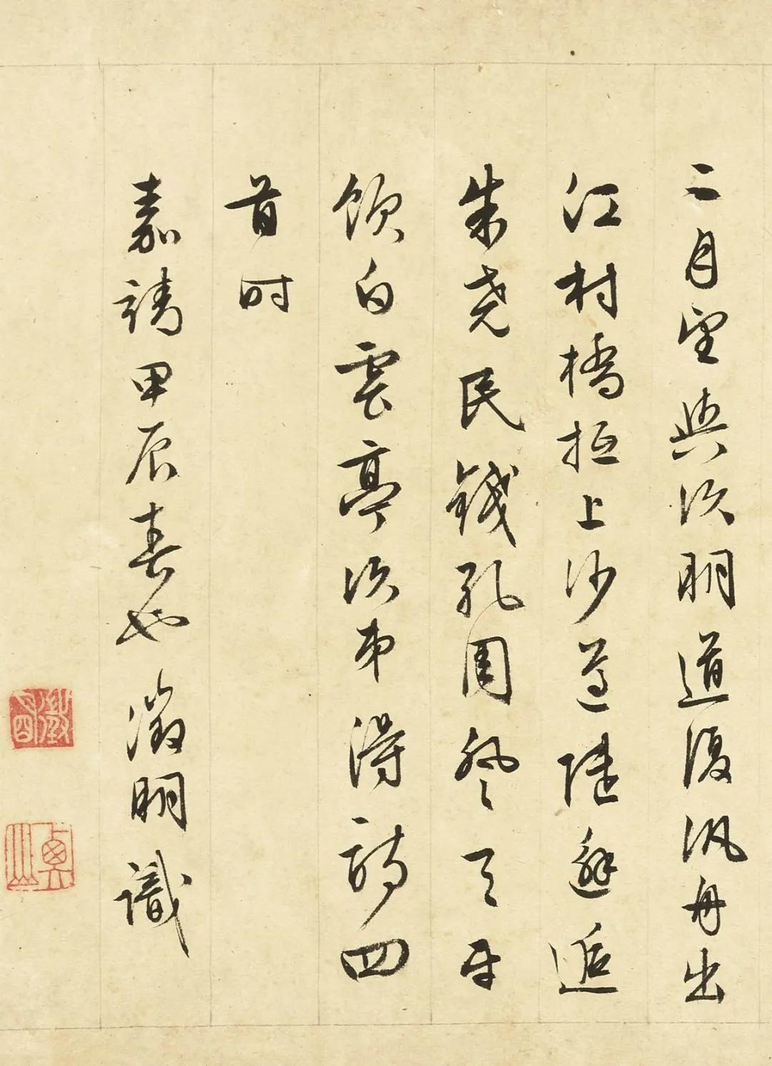 【5】二月望,与次明道复。泛舟出江村桥,抵上沙。遵陆,邂逅朱尧民、钱孔周。登天平,饮白云亭,次第得诗四首。时嘉靖甲辰(1544年)春也。徵明识。