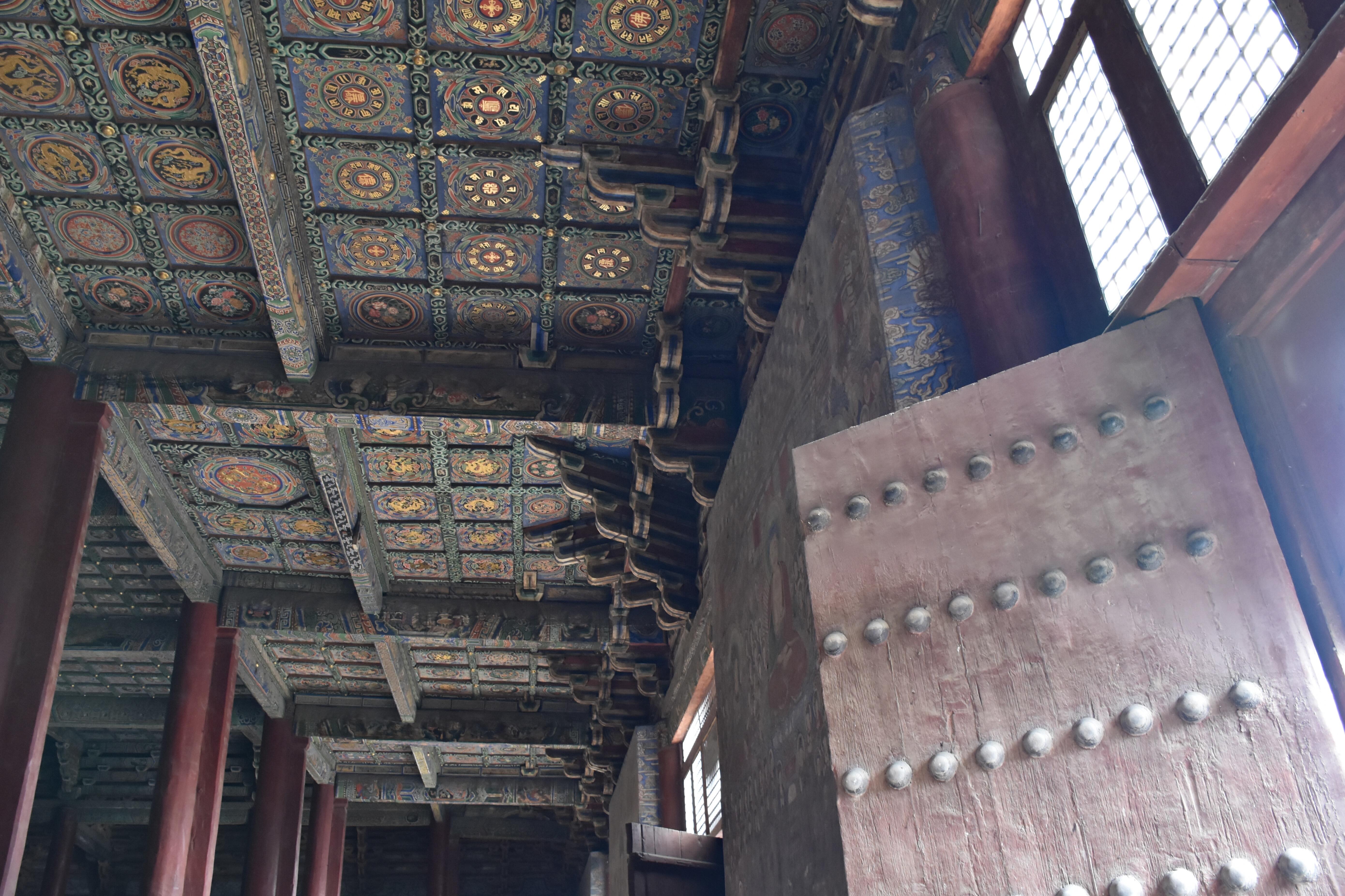 推开殿门,一股混合着香火、木材与岁月的气息扑面而来。殿内空间开阔得超乎想象,梁架结构简洁雄浑,没有多余的装饰,却以精湛的榫卯工艺,将巨大的屋顶稳稳支撑。抬头望去,一根根横梁如长虹卧波,斗拱层层叠叠,虽历经金代重建、后世修缮,却依旧保留着辽金木构独有的雄浑大气。这种“以简驭繁”的营造手法,没有明清建筑的繁复雕琢,却更能凸显木构建筑的本质之美,让人感受到古代工匠对力学原理与建筑美学的极致把握。