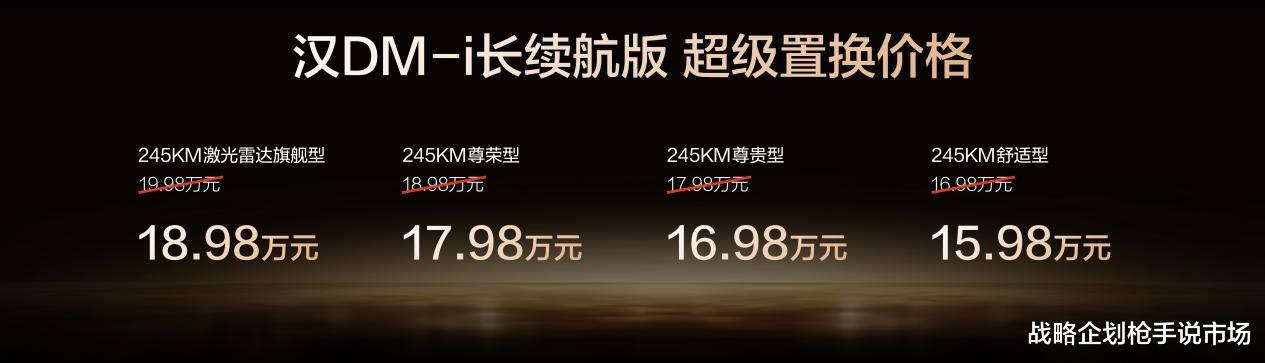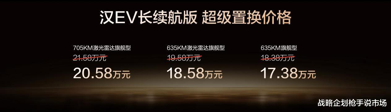 汉EV长续航版:起步635km,顶配705km,百公里电耗10.6度,刷新“中大型轿车电耗地板价”。