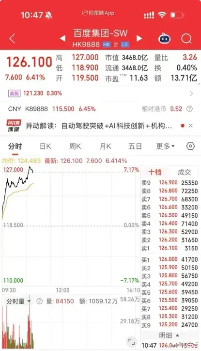 11月4日,百度集团港股开盘大涨6.2%。消息面上,萝卜快跑内部人士披露最新数据:全球覆盖城市数量已经达到22座;截至10月31日,萝卜快跑每周订单量超25万单,且100%为全无人订单;从累计服务单量来看,萝卜快跑全球订单超过1700万单,远超谷歌Waymo的1000万单,稳居全球最大的无人驾驶出行服务商,并且与谷歌Waymo奠定了全球无人驾驶行业中绝对的领跑优势。