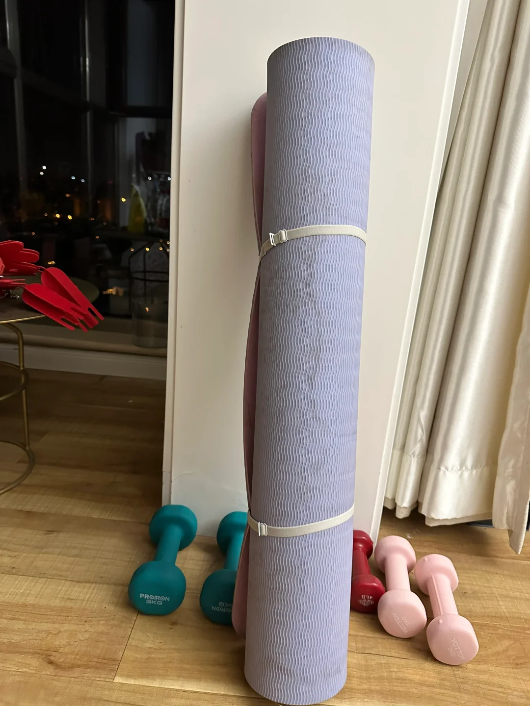 不穿的内衣可以将上面的肩带拆卸下来,然后用肩带收纳家里的瑜伽垫,地垫等一些物品,卷起来之后,用肩带收纳,肩袋可以调节,而且有很大的弹力。