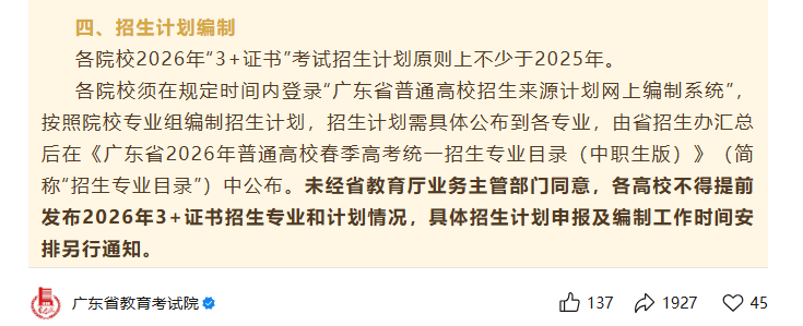 虽然考试院通知明确“各院校2026年“3+证书”考试招生计划原则上不少于2025年。”