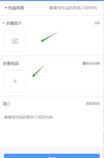 每个作品都能上传图片或视频(视频可以设置为非必选项),单张图片不超过5M,单个视频不超过300M,有设置自主报名功能,想要参赛的同学可以自己提交作品,活动方只需要后台审核一下,审核通过后作品就自动上线了,很省事。