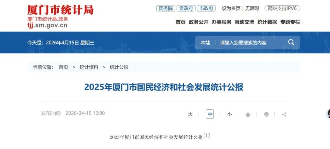 点击以下网址阅览2025年厦门经济统计公报全文: