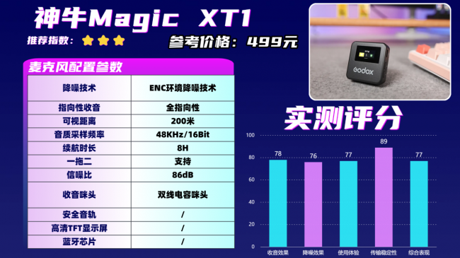 该产品搭载全向电容咪头,支持48kHz高清采样,信噪比>80dB,内置基础降噪功能可过滤轻微环境杂音,人声捕捉通透,且内置8GB板载内存,断连时也能独立留存素材,避免丢失。