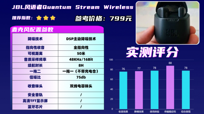 这款一体化设计大幅提升便携性,收纳无需单独放置发射器,适配采访、直播、户外拍摄等多场景,传输稳定,抗干扰能力较强,无需复杂调试,上手难度低。