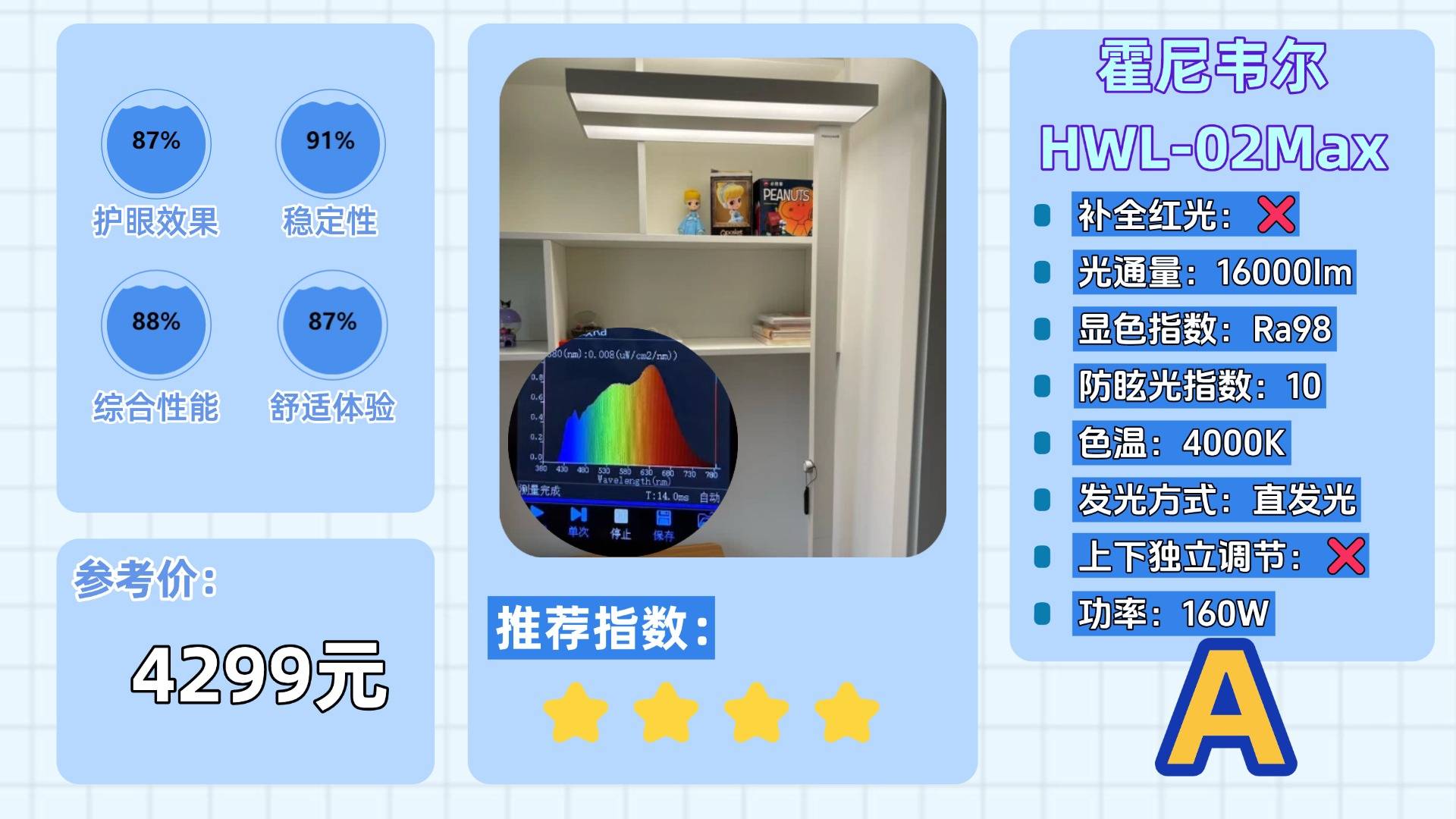 上榜理由:整体的显色指数在95以上,能够有效的还原色彩。