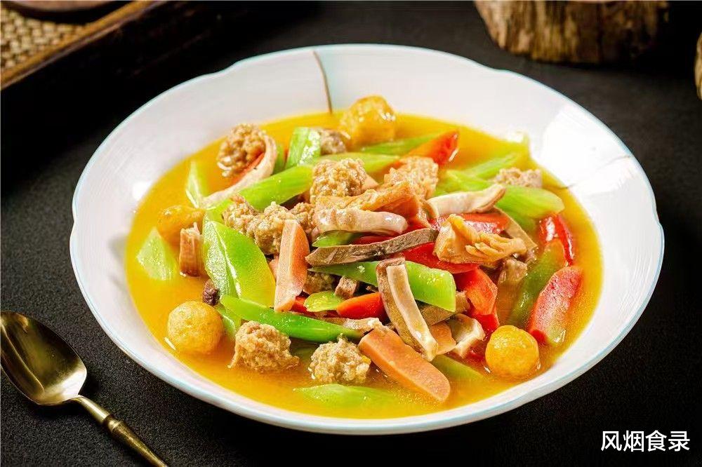 猪心、猪肚、鸡块、海参、冬笋、香菇,荤素搭配十来种,寓意“十全十美”。