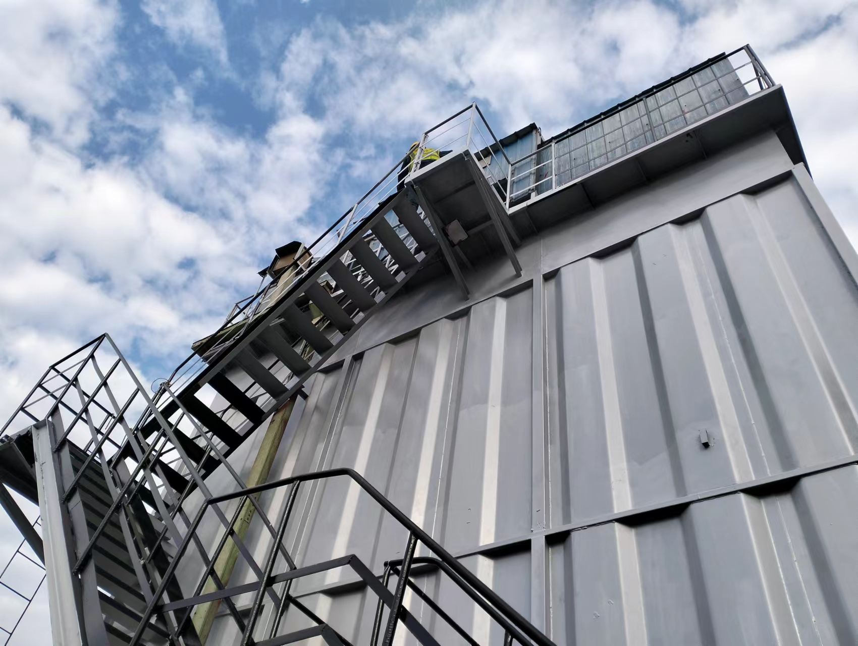 搭设脚手架或启用高空作业车,确保作业平台牢固防滑;脚手架外侧挂密目安全网,作业人员全程系挂双钩安全绳,工具放入防坠工具袋;对电焊机、喷涂设备等电气设备做好接地保护,避免漏电事故;遇大风(风速≥6 级)、雨雪、高温(≥35℃)天气,立即停止室外高空作业。