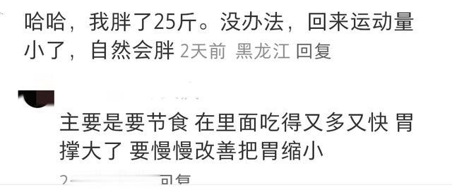有网友说,她老公的表弟回来前130斤,现在170+。问题是她老公表弟还不高,也就175的样子,现在整个一圆柱体,肚子比他快生孩子的老婆都大。