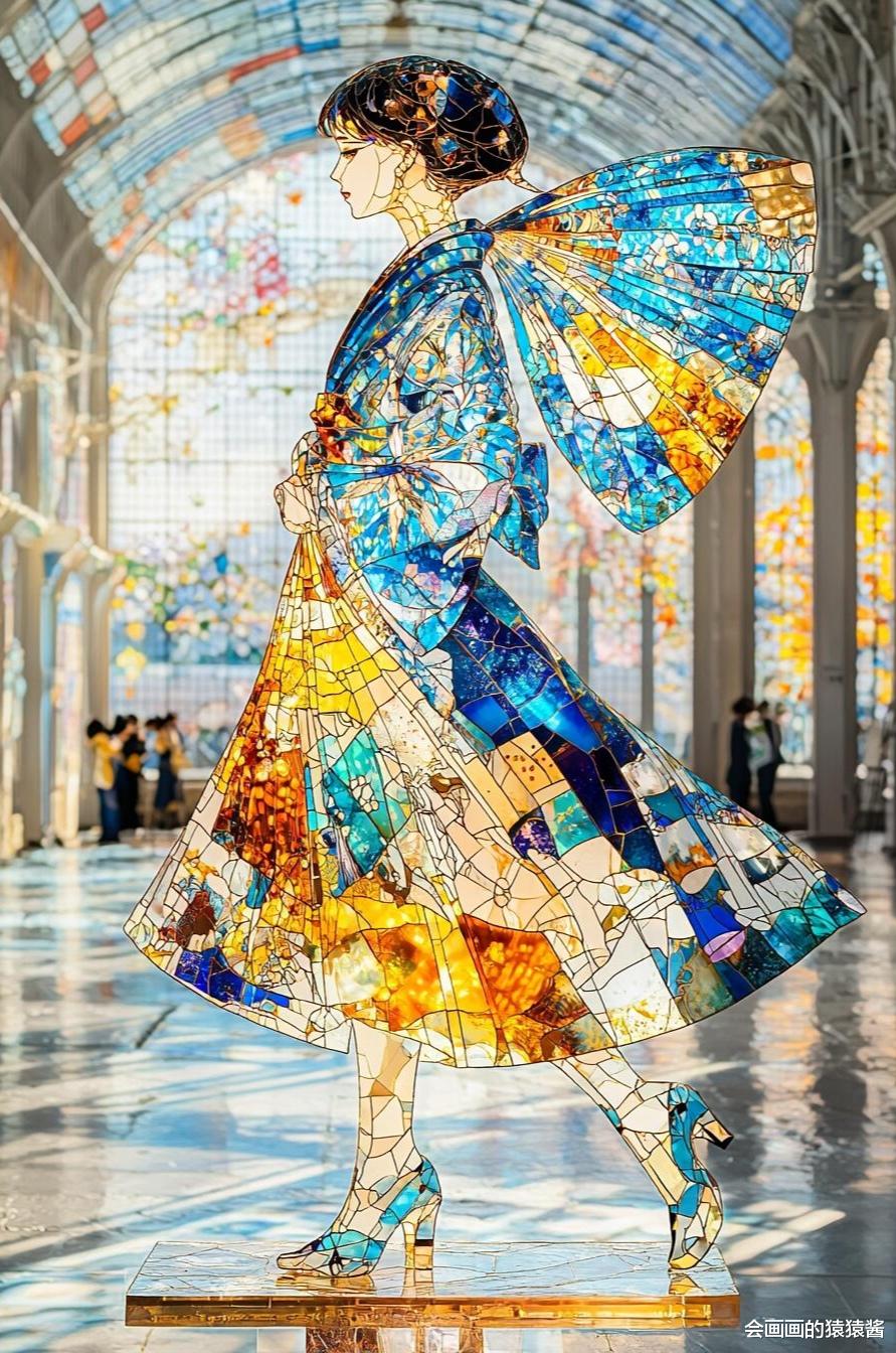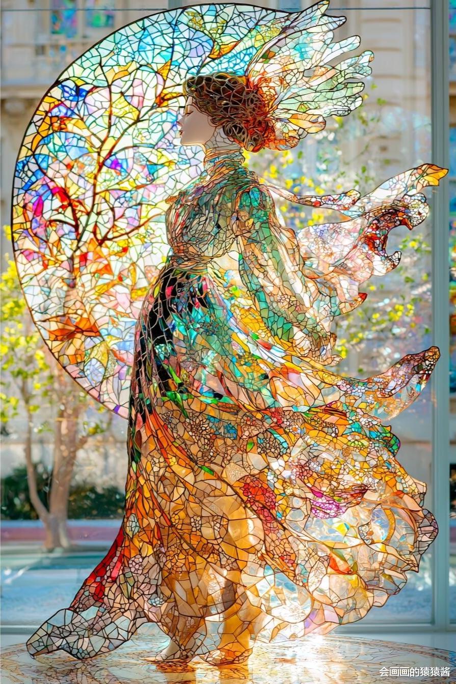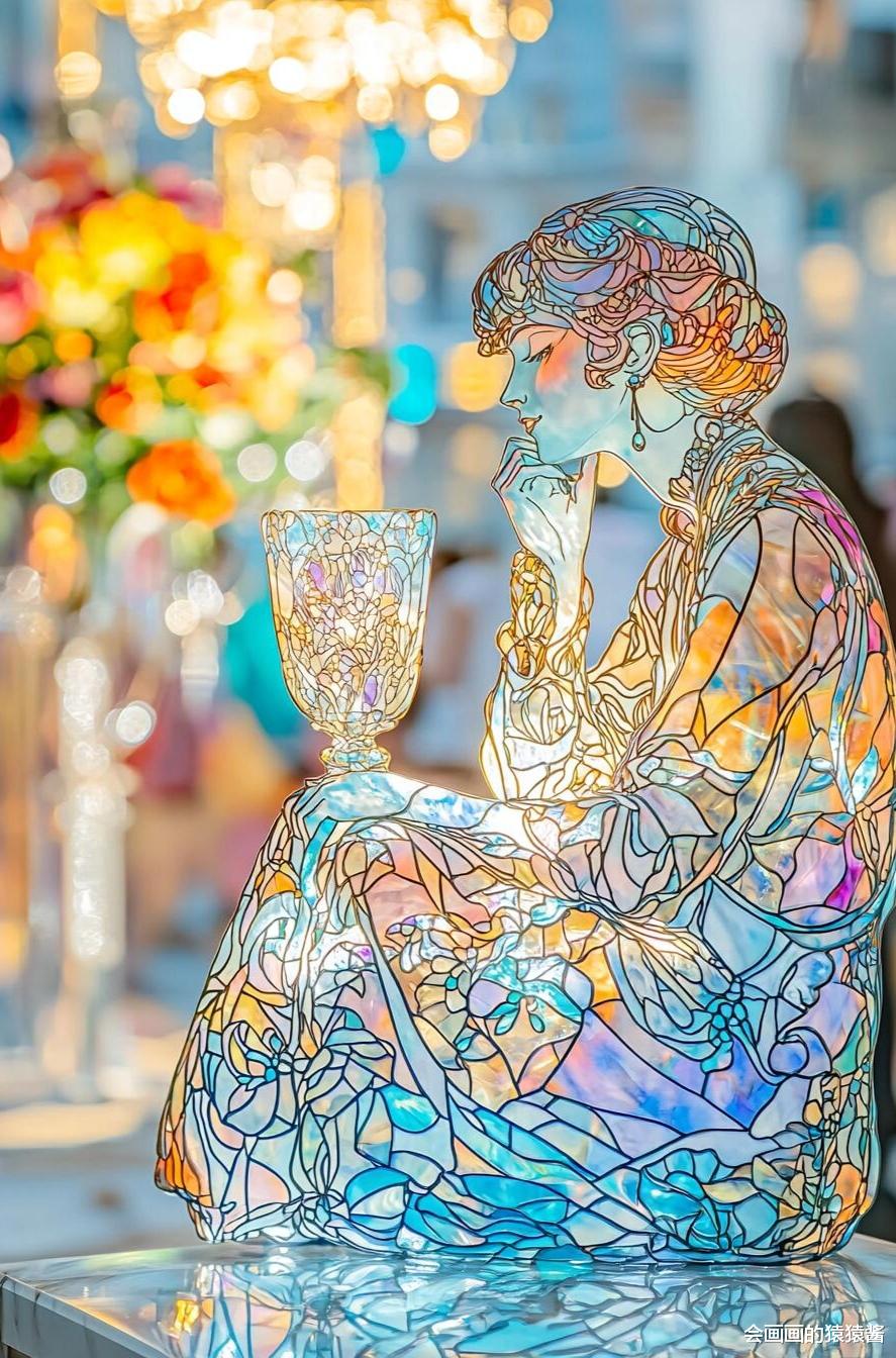 ComfyUI 把 “光影里的诗意” 熔进玻璃的温柔创作。画面里侧坐的少女由无数块斑斓彩玻璃拼接而成,暖金与蓝紫的渐变在玻璃肌理中流淌,发丝与衣褶都被黑铅线条勾勒出细腻轮廓,美术馆的柔光穿过玻璃,在地面晕开细碎光斑,像把一整个新艺术运动时期的浪漫,都封进了这面会呼吸的彩窗里。