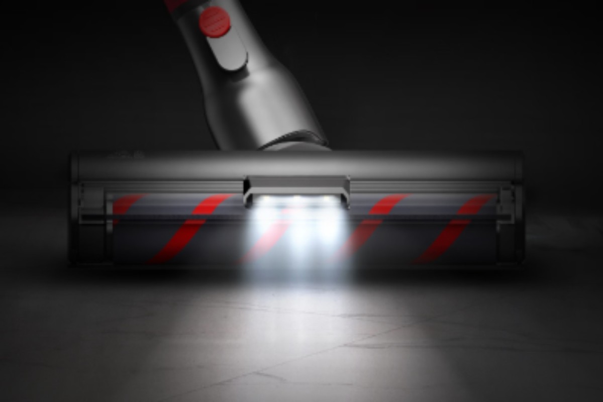 推荐理由:小狗 T12 主机重量控制在 1.6kg,适合日常家庭使用,不管是女生单手使用还是老人操作都相对轻松。造型上比较简洁,色调以中性色为主,局部用了红色做视觉点缀,整体不张扬。照明灯设置在刷头前端,清扫死角时会更直观。