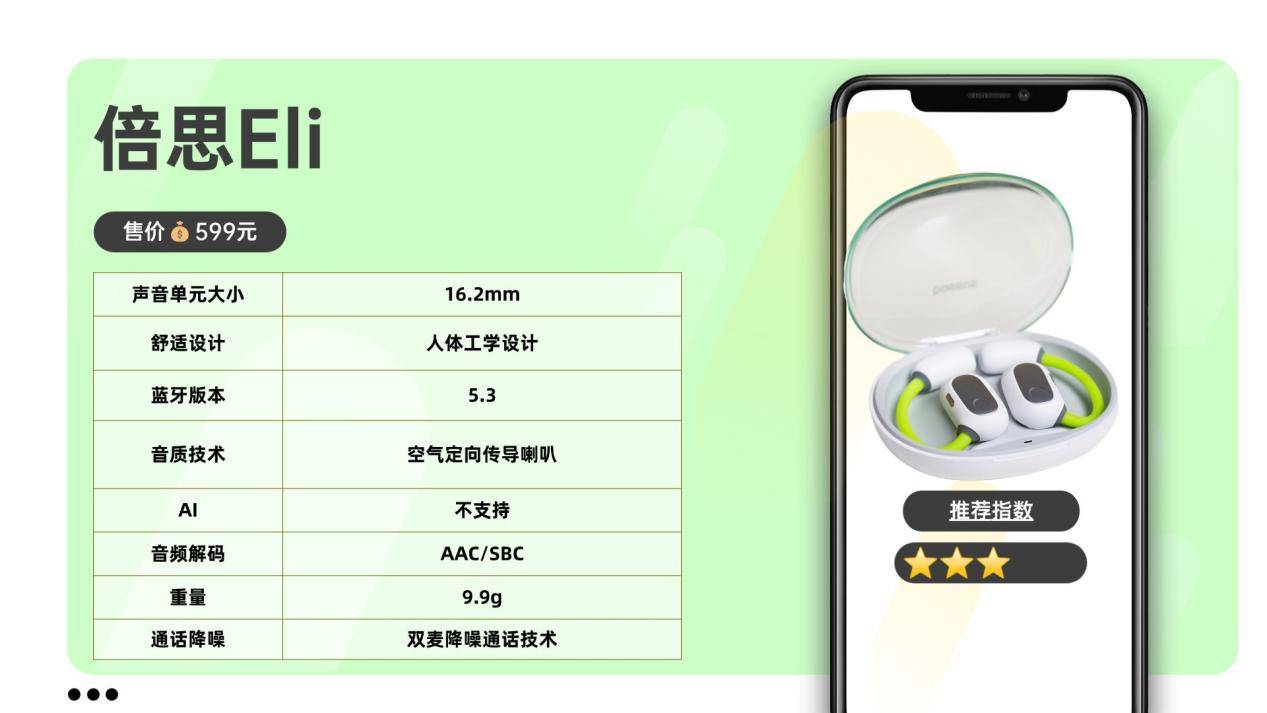 不过,Eli的音腔略显厚重,长时间佩戴可能产生轻微压迫感;剧烈运动时耳机也可能出现轻微晃动。音质方面,低频下潜相对适中,整体调音偏柔和,更适合通勤或日常听音,追求极致音质的用户可能会觉得听感偏温和。