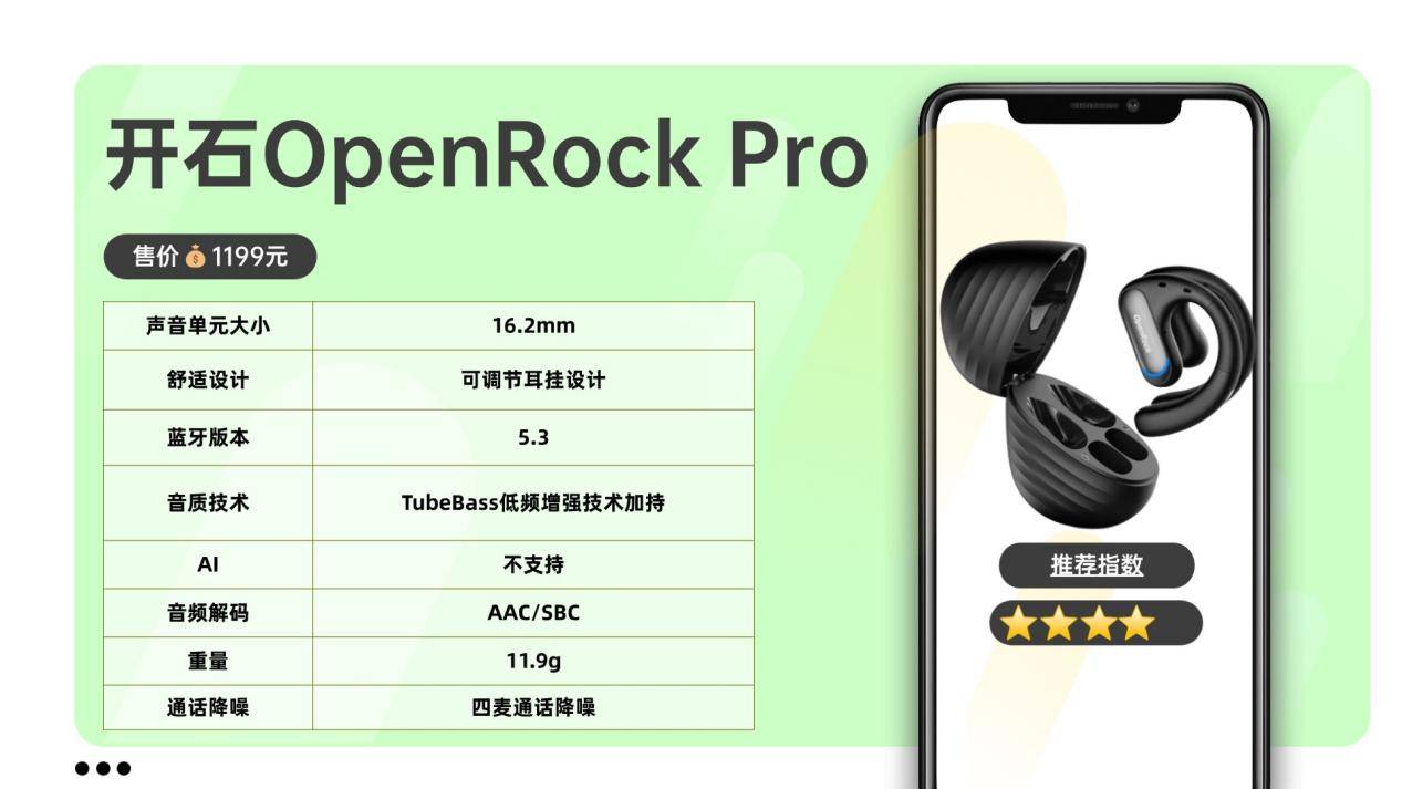 开石OpenRock Pro采用创新三段式可调耳挂设计,用户可根据自身耳型自由调节松紧,实现佩戴稳固与舒适性的最佳平衡,即便长时间使用也不会感到压迫或沉重。耳机内置自研定向声波传输技术,能精准聚焦音频输出,有效降低漏音情况,既保护个人听音隐私,又避免打扰周围他人。