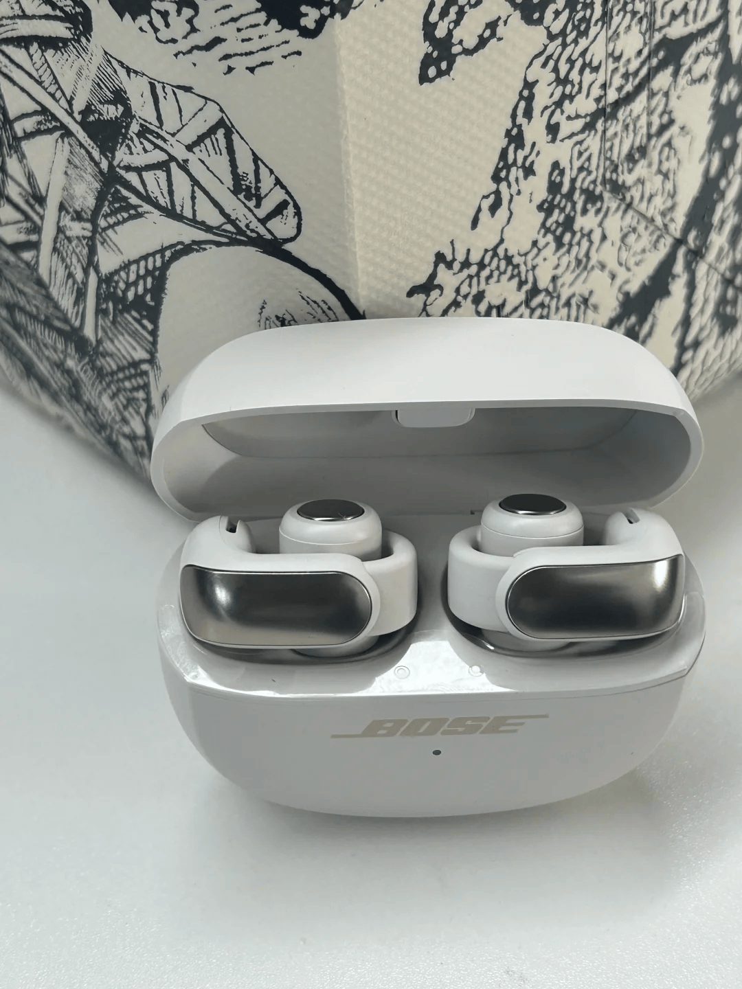 Bose Ultra是Bose于2024年2月推出的首款开放式耳机,官方售价1999元,主要围绕环境感知与沉浸式音频两大核心需求设计,可满足运动、通勤等多种全天候使用场景。结构上采用耳夹式设计,耳机主体通过柔性硅胶带连接发声单元与电池仓,边缘经过光滑曲面处理,并辅以磨砂金属材质,佩戴时可兼容眼镜、帽子等配饰,不会出现搭配冲突问题。