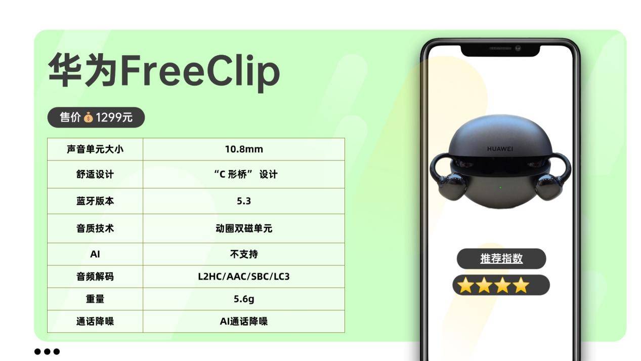 音质表现上,FreeClip配备10.8mm双磁路单元,还融合了华为自研的空间音频技术与头部追踪功能,能实现小于1°的精准动态校准。无论是观影还是听音,声场会随头部转动自动调整,为用户带来更强的沉浸音效体验。