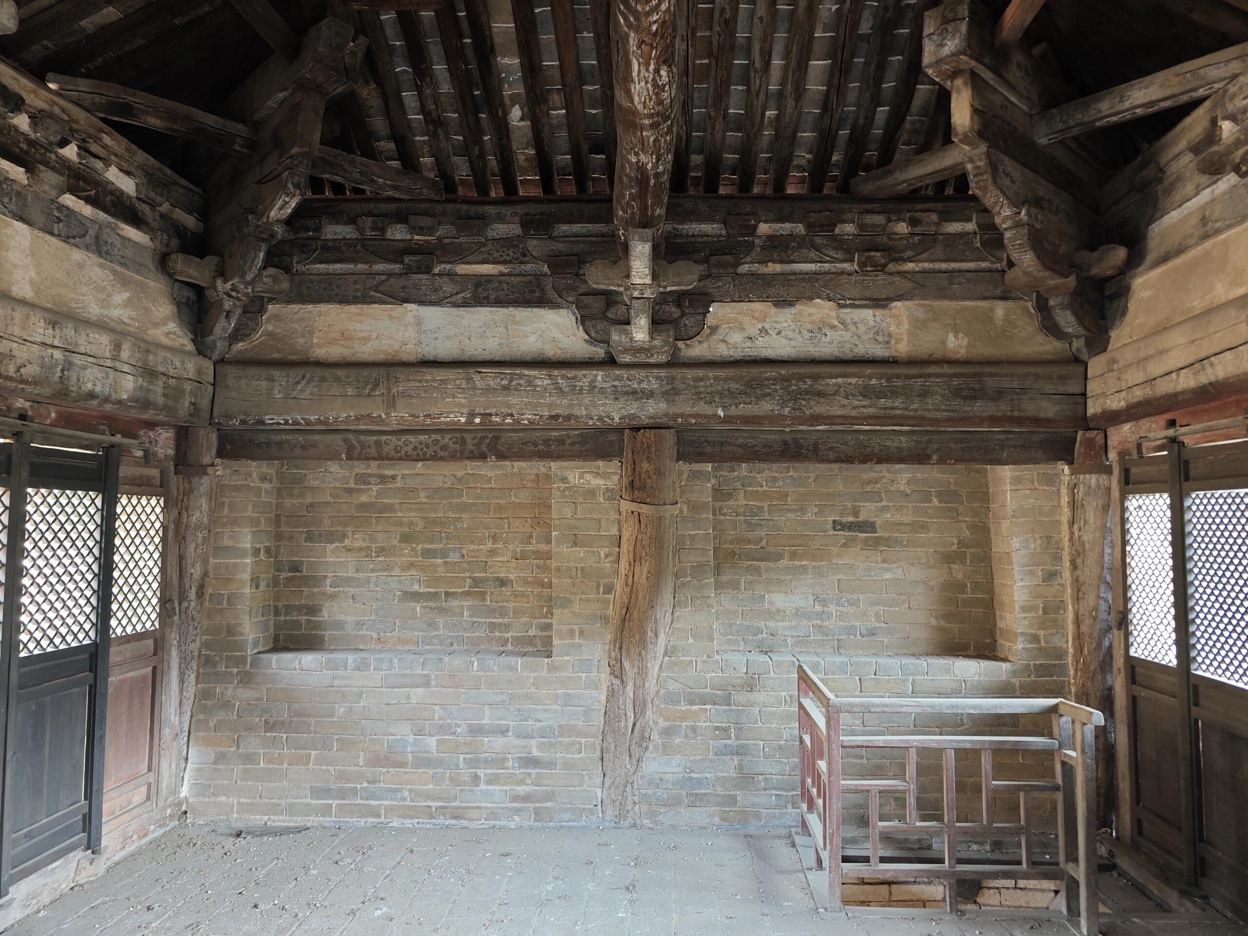 藏经楼的内部结构,更是金元建筑风格的活教材。抬眼望去,梁架结构一目了然,没有多余的装饰,完全以实用为主。粗壮的木梁横跨整个空间,梁与柱之间的榫卯结构清晰可见,每一处节点都严丝合缝,展现出古代工匠精湛的技艺。这种“减柱造”的做法,在金元时期颇为流行,通过减少部分立柱,扩大内部空间,既满足了藏经的需求,又保持了建筑的稳固性。天花板上,还能看到一些残留的彩绘痕迹,虽然颜色已经褪去,但隐约可见的云纹和花卉图案,仍能让人想象出当年的精美模样。