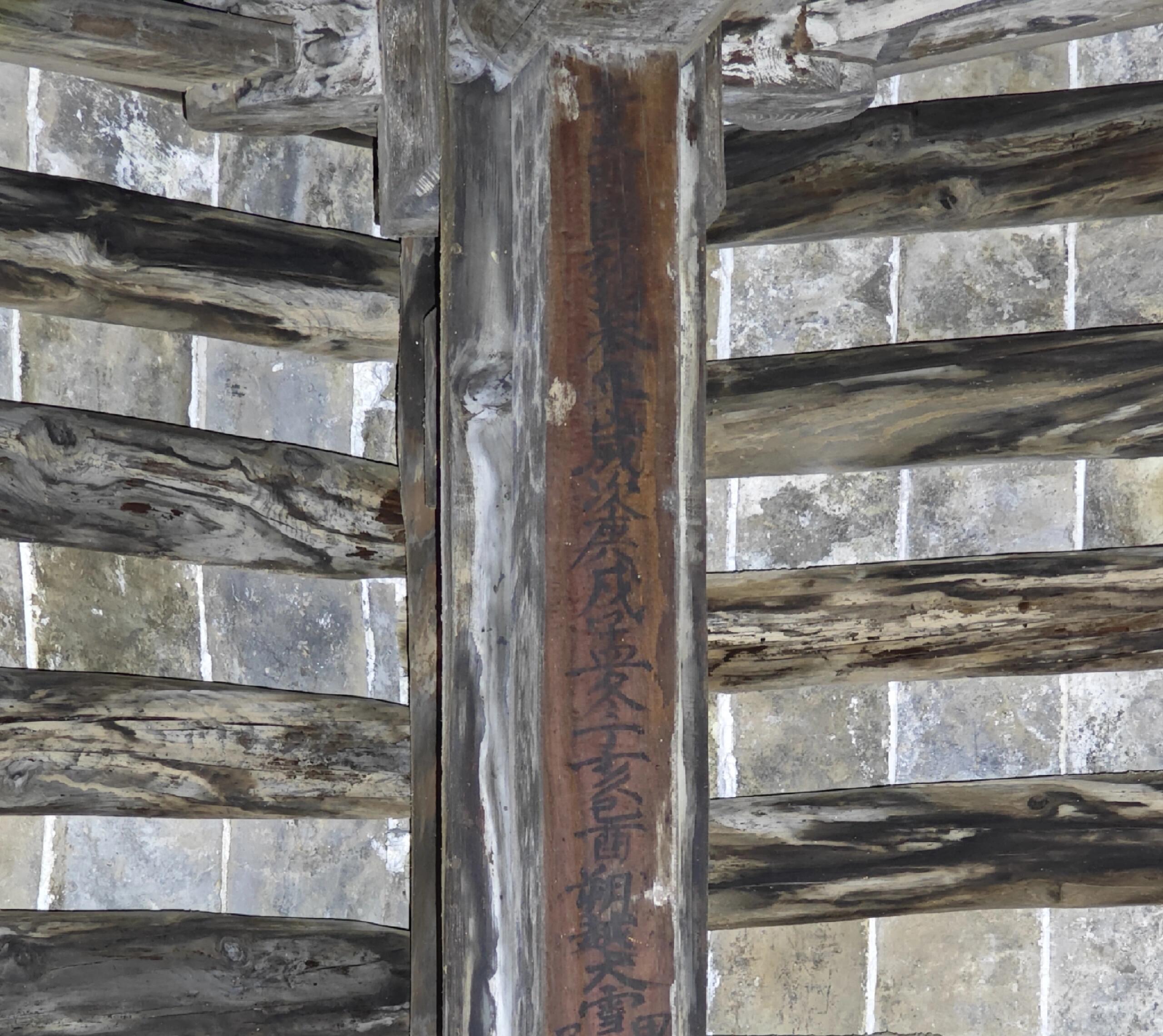 拾级而上,登上二层,首先映入眼帘的是明弘治三年的题记。字迹虽有些模糊,但“大明弘治三年岁次庚戌孟夏吉旦”的字样依然清晰可辨。题记的存在,像是给这座建筑打上了一个明确的时间戳,让人能够确切地知道,它已经在这片土地上矗立了五百多年。关于题记的内容,后人有诸多猜测:它或许记录了藏经楼的建造过程,或许记载了当时的捐资者和工匠,又或许只是一句简单的祈福之语。但无论如何,这些文字都是历史的见证,让我们得以跨越五个世纪,与明代的工匠们产生一丝微妙的联系。