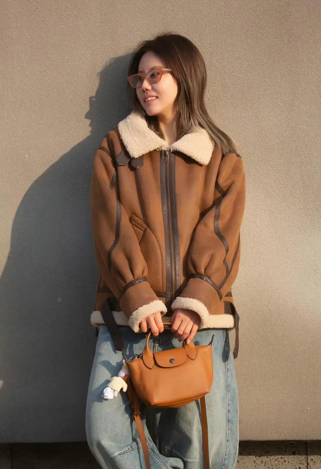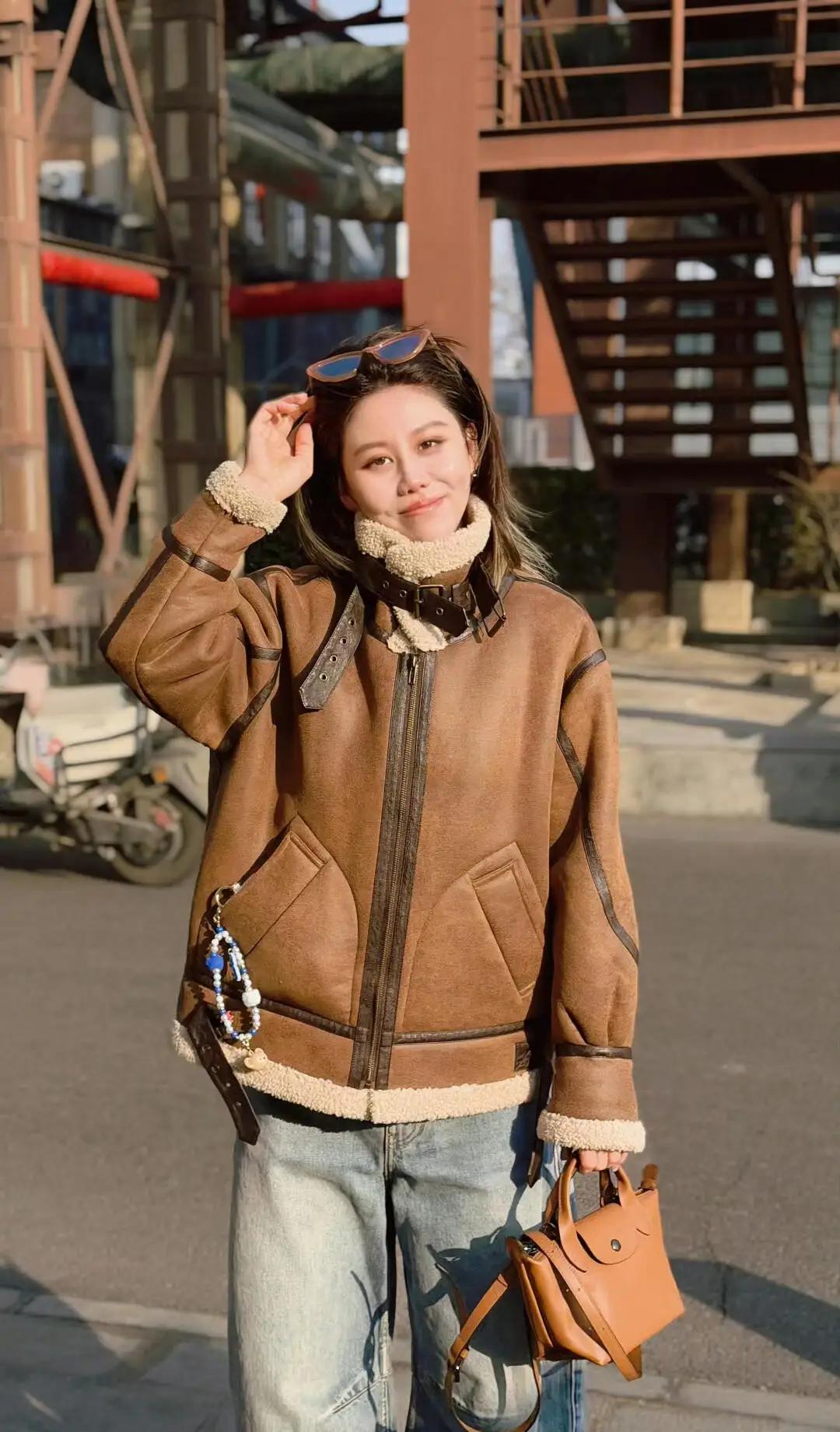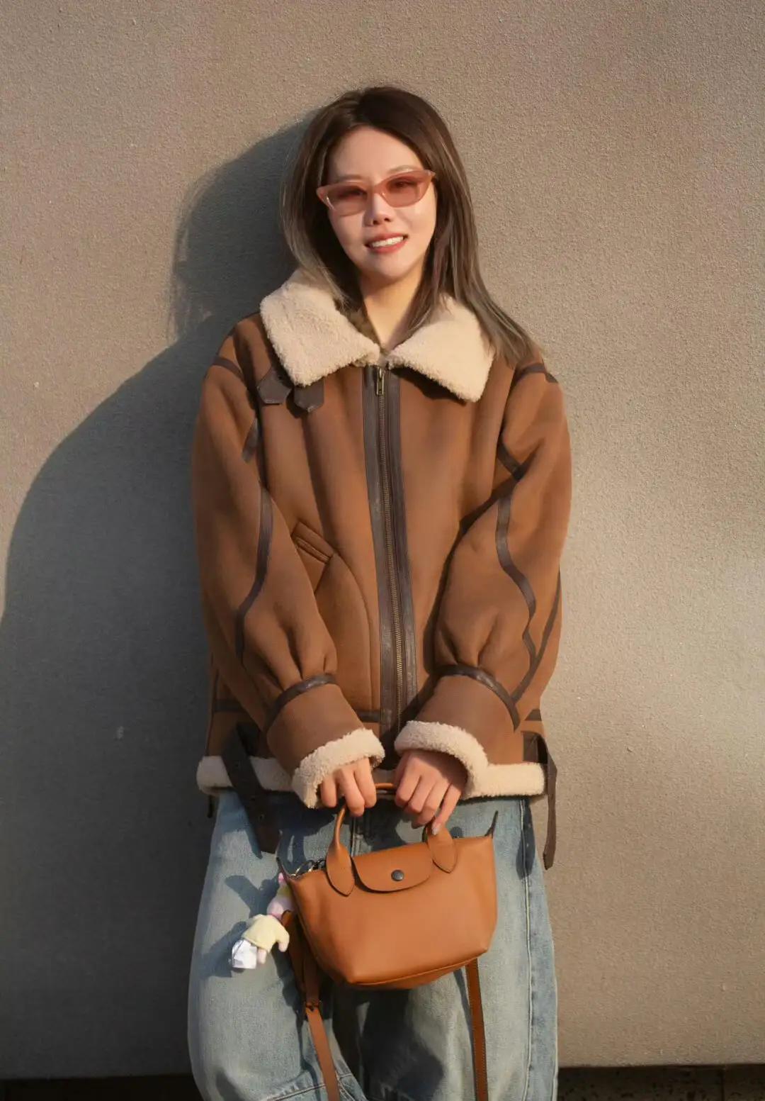 最近又在社交媒体上发布自己的一组街拍时尚照片。