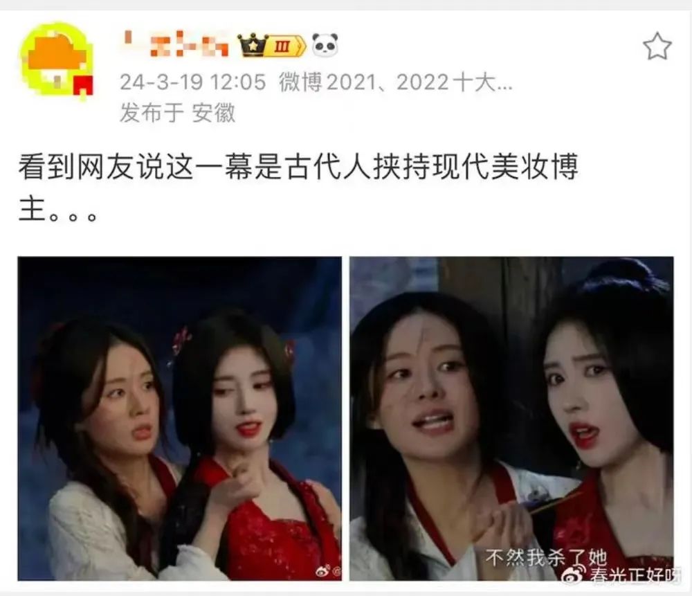 这不由得让小编想起了鞠婧祎的《花间令》,同样是妆造遭到吐槽,网红感玻璃唇,妥妥的现代美妆博主。而剧中,女二号郑合惠子表演非常自然,情感表达细腻,收获到不少好评。