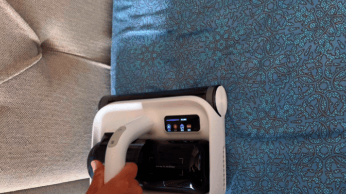 实际使用时,这款除螨仪无需预热,开机几秒就能释放稳定温热气流,清洁后的床品瞬间从阴冷潮湿变得干爽蓬松,秋冬季节使用体验格外舒适,用来清洁婴幼儿床品也十分安心。机身底部搭载多组出风口,18.5cm×6cm加热片让单次热力覆盖面积达到93cm²,是普通同类产品的6倍,能让热量均匀渗透每一处清洁区域,避免局部过热伤衣或除湿不均,实现除螨、除湿、护物三重效果。