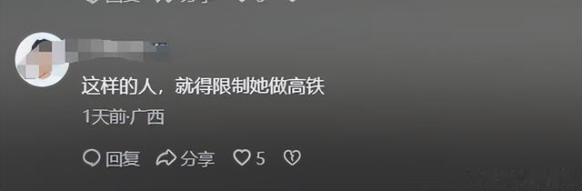 广西这位网友又说到:“这样的人,就得限制她坐高铁。”
