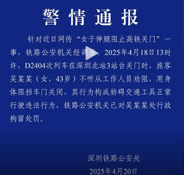 前两天,也就是4月18日,在深圳北站一辆D2404次列车即将关门启动之时,有一女子站在车门,用脚去阻止列车关门,试图等待同行人上车。现场工作人员对其进行劝阻,怎么劝,女子死活不听,越劝越来劲,工作人员也是很无奈,尽管女子等来了她的同伴,也得逞了,但事情还没有结束。