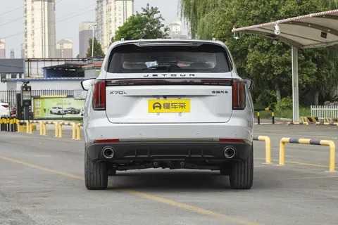 车尾部分,贯穿式尾灯组同样引人注目。灯腔内部采用点阵式光源,两侧向下延伸形成 “门” 字形结构,在夜间点亮时,辨识度极高,同时也与前脸的设计相呼应,使整车的外观更加协调统一。后包围层次分明,双边双出排气装饰(实际为隐藏式布局)与银色护板的搭配,延续了前脸的运动风格,让车辆在稳重中又不失动感。牌照框区域的内凹设计,增加了车尾的立体感,尾门左侧的 “X70L” 标识则清晰地表明了车型身份。整体来看,捷途 X70L 的车尾设计简洁大方,虽然没有前脸那样惊艳,但却给人一种踏实、可靠的感觉。