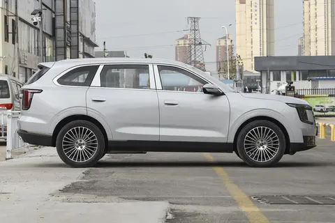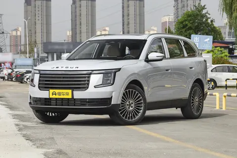 车身侧面,线条流畅且稳重,悬浮式车顶与上扬的腰线相互呼应,营造出一种动感的姿态,让整车看起来充满活力。其长宽高分别为 4810×1930×1705mm,轴距达 2820mm,这样的尺寸在同级别车型中具有明显优势,为车内宽敞的空间奠定了基础。半隐藏式门把手的设计,既降低了车辆的风阻系数,又保留了传统机械解锁功能,在追求科技感的同时,也充分考虑到了用户在不同场景下的使用需求。C 柱上的 “JETOUR” 徽标、镀铬车窗饰条以及 19/20 英寸多辐轮毂(可选装),每一处细节都处理得恰到好处,进一步提升了车辆侧面的精致度。此外,车顶行李架与侧踏板的设计,更是为家庭出行提供了极大的便利,无论是装载行李还是方便老人小孩上下车,都考虑得十分周到。