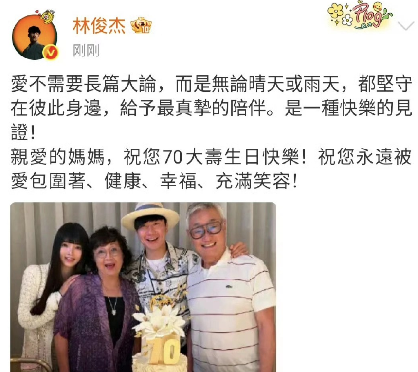 在这张照片里,林俊杰精心准备的精致蛋糕成为温馨的注脚,两位老人脸上洋溢的笑容,如同冬日里的暖阳,温暖而明媚。女友紧挨着林妈妈,那自然的肢体动作,仿佛在无声地诉说着一段和谐融洽的关系。这一幕,对于林妈妈而言,儿子带着心仪的另一半来为自己庆祝70岁生日,无疑是最好的礼物,了却了她心中一桩长久的心事。