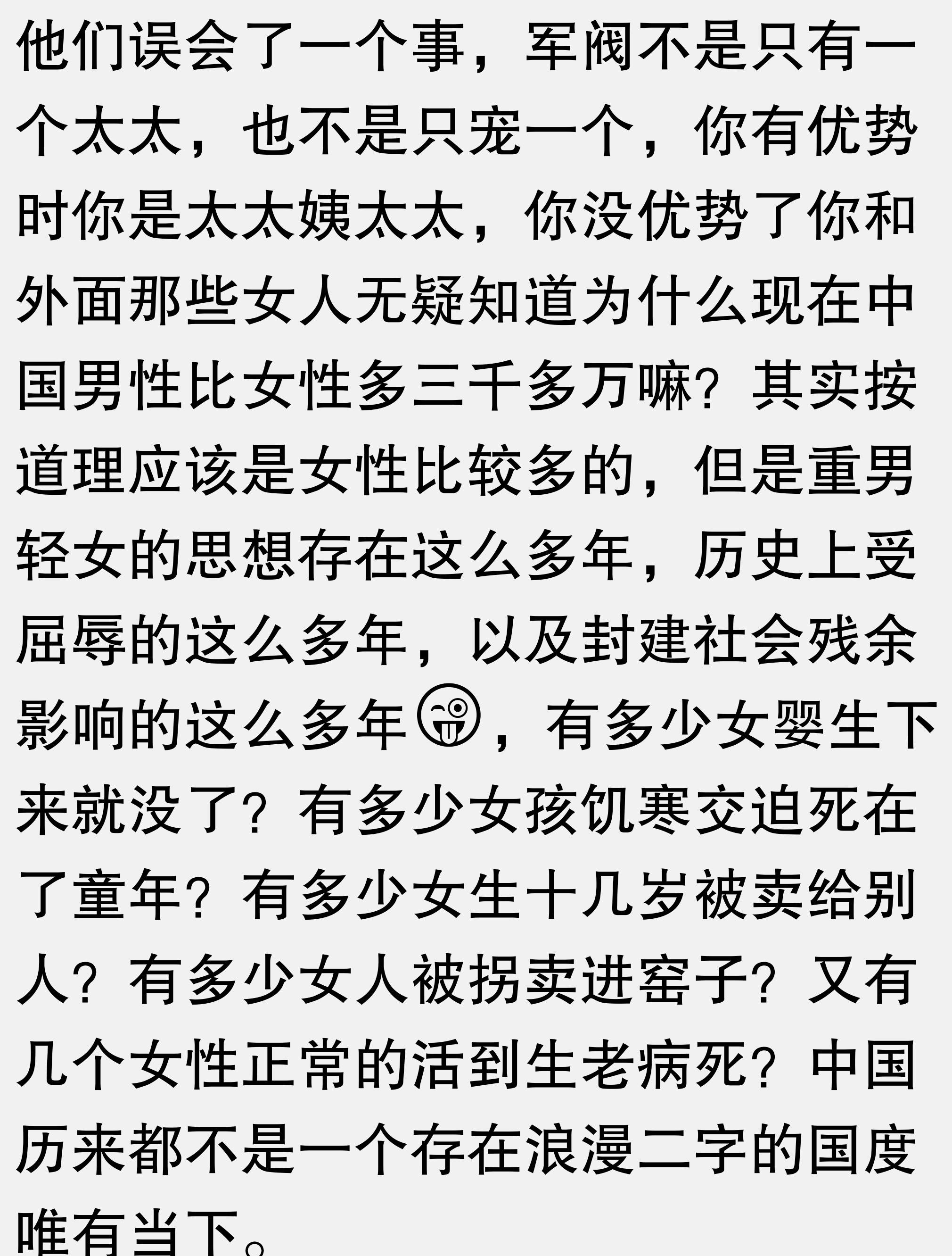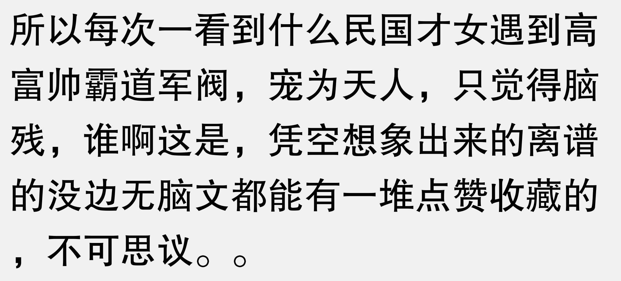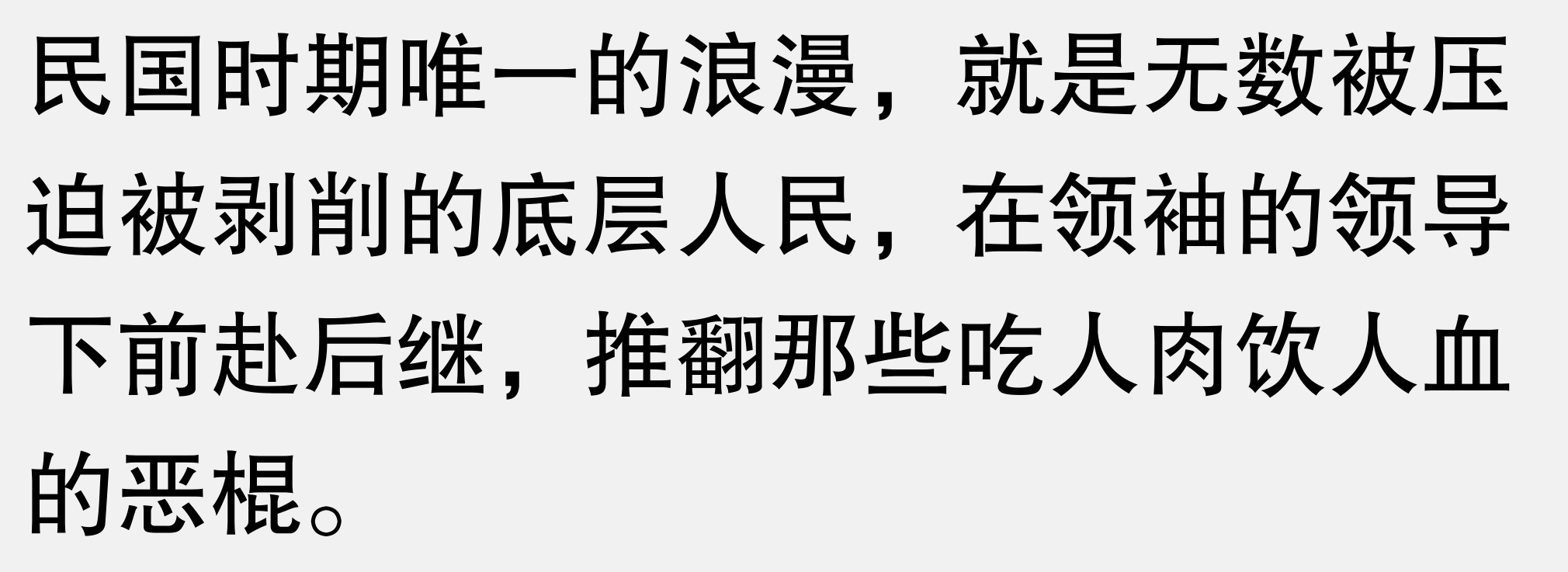 杀机四伏民不聊生中有志之士追寻一线希望可以算是浪漫,残酷的环境才能把崇高的理想变得更加耀眼,把一些还算不那么糟糕的瞬间变得美好。所以我不反对有人会觉得乱世是一种浪漫,但说出民国浪漫的人如果对那些残酷没有任何认识,那就是一种无知和愚蠢,是低劣懒惰者因为对现实不满而浮想联翩,以为不论哪个时代都比现代好。