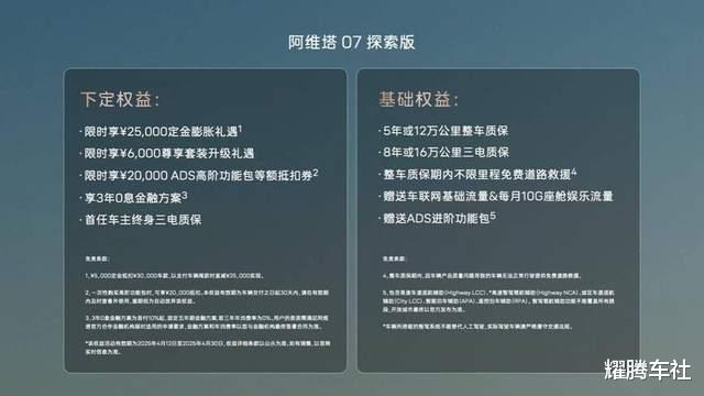 阿维塔07探索版表面来看25.99万的起售价比基础版上浮4万元,但结合2.5万元定金膨胀、6000元套装升级等限时权益,实际入手价下探至23.49万,与阿维塔07 Pro+基本处在同一区间。这种“高开低走”的定价逻辑既维持了品牌溢价,又以变相优惠刺激消费决策。对比去年9月上市的标准版,探索版将12000元舒享套装改为标配,同样相当于变相降价,这让整车的性价比表现优异。