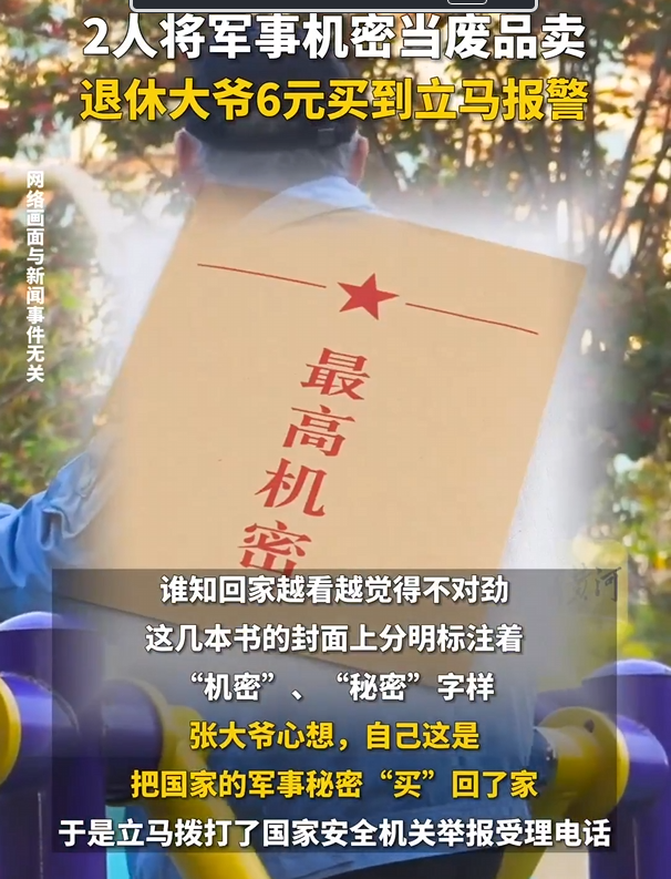 近日,一则令人啼笑皆非的新闻引起了广泛关注。一位大爷在废品站仅用6元就买到了一份所谓的“军事机密”,而大爷的举动令人称赞,他没有丝毫犹豫,立刻选择了报警。这件看似荒诞的小事,却折射出了诸多值得我们深入思考的问题,尤其是关于国家信息安全和保密意识教育。