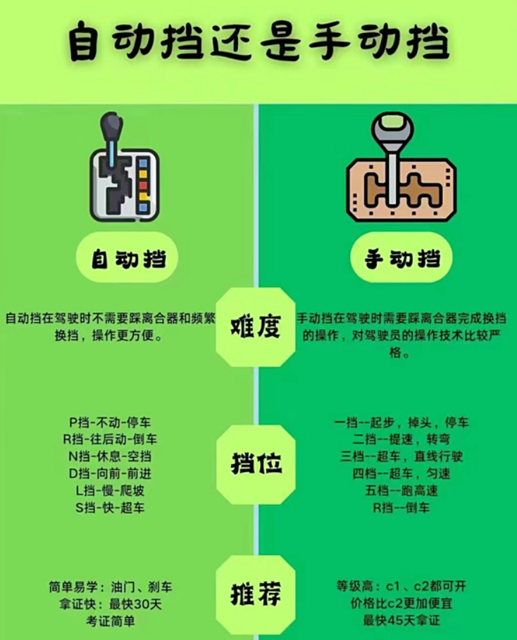 手动挡与自动挡功能区别对比!