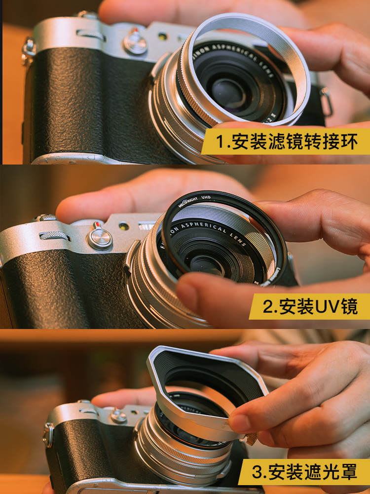 UV镜用来保护镜头,遮光罩抗眩光提画质,这套组合让富士直出更纯粹,户外扫街超安心~