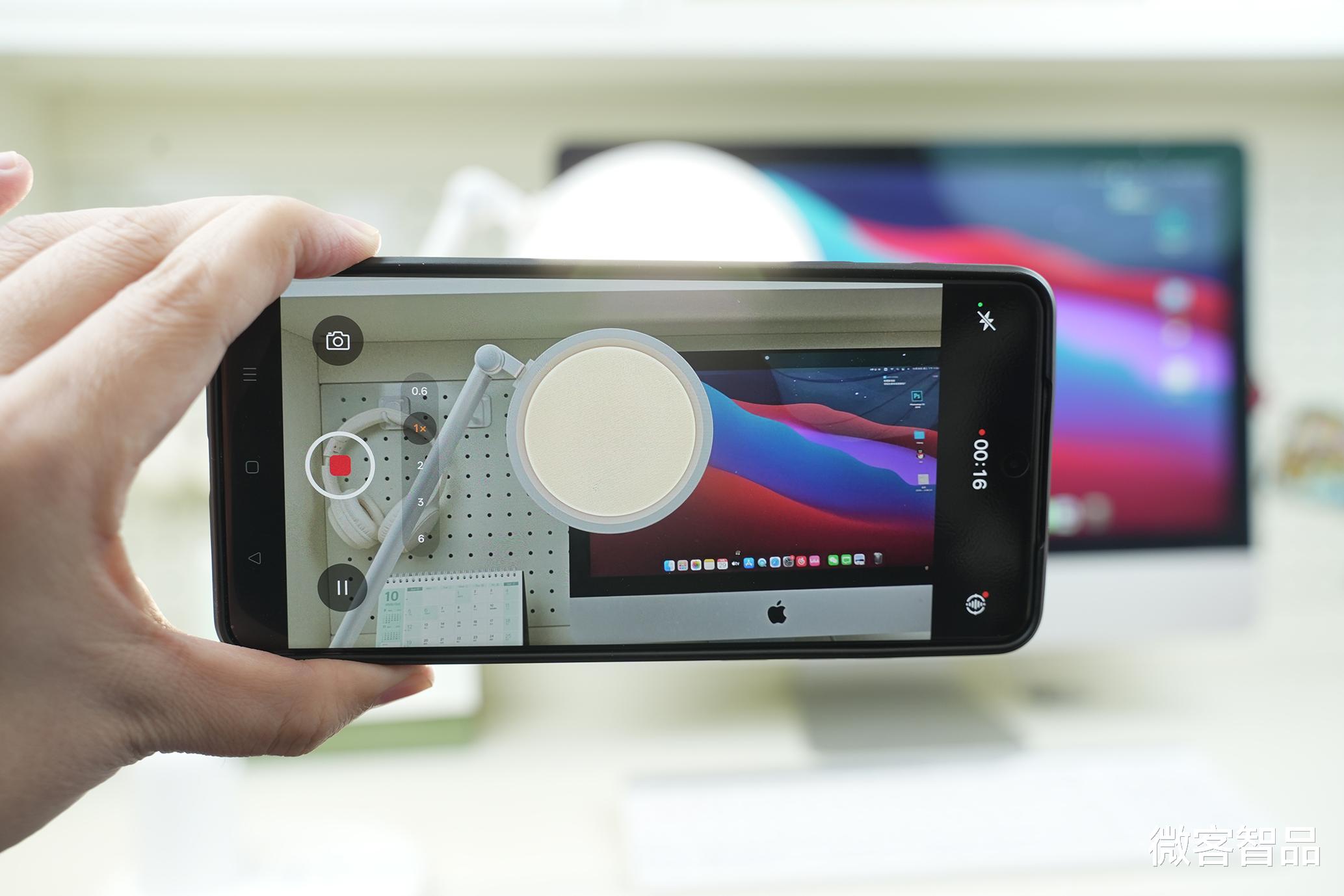 相对传统蓝光激发光源,书客SKY采用的新一代全光谱技术,通过专研定制的SunSilk护眼芯片,比传统蓝光激发光源,从源头有效抑制有害蓝光峰值低于0.7,精准拦截400-450nm有害高能蓝光,有效降低眼睛受到的潜在伤害,真正做到从源头降低蓝光。通过简单的手机摄像头测试,可以看到画质清晰,无频闪的条纹出现。