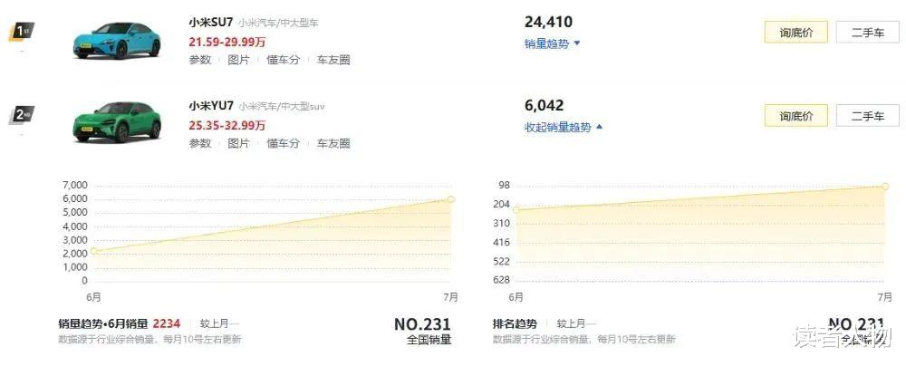 7月销量数据显示,小米YU7以6042辆的成绩位列细分市场第四,超过了宝马X5等传统豪华车型,而这还是在产能爬坡阶段取得的成绩。